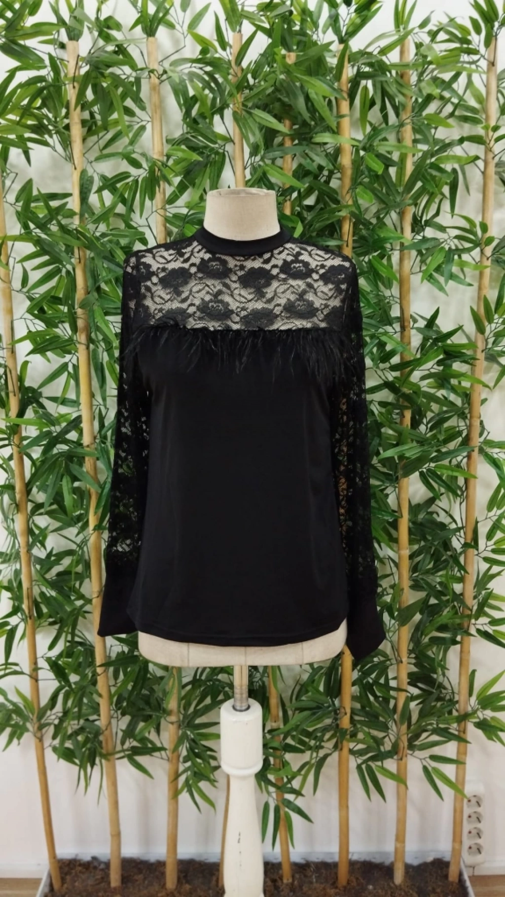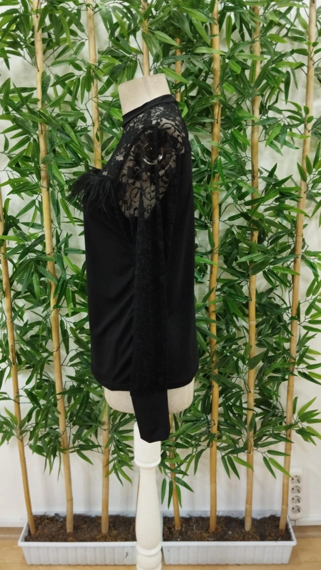 Kadın Uzun Kollu Yarı Balıkçı Yaka Dantelli Sandy Bluz