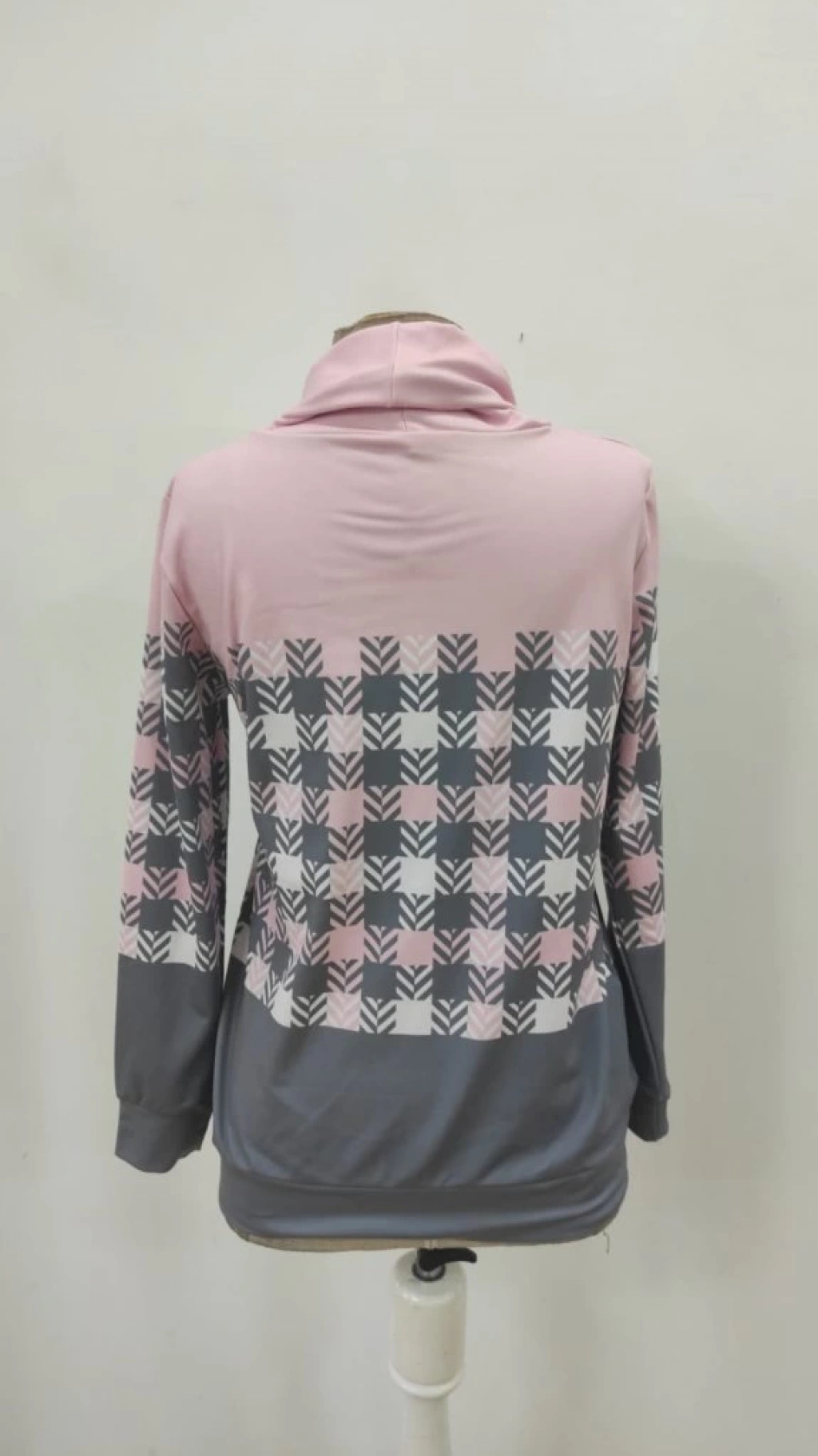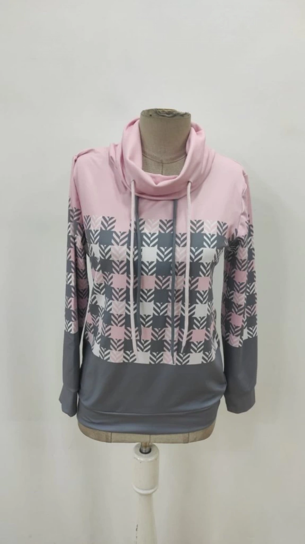 Kadın Uzun Kollu Balıkçı Yaka Bağcıklı Desenli şardonlu Dalgıç Bluz
