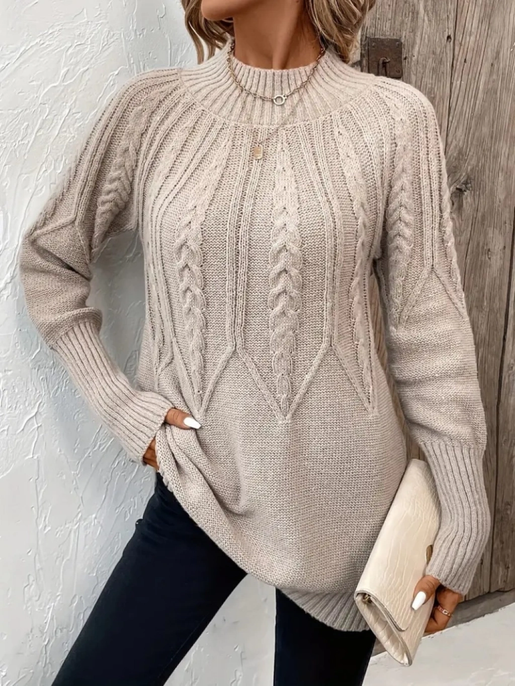 Kadın Uzun Kollu Yarı Balıkçı Yaka Triko Bluz