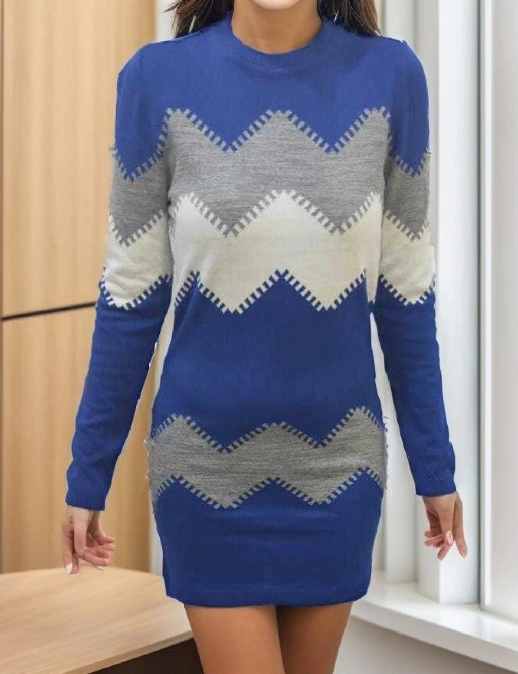 Kadın Uzun Kollu Zigzag Desen Triko Elbise