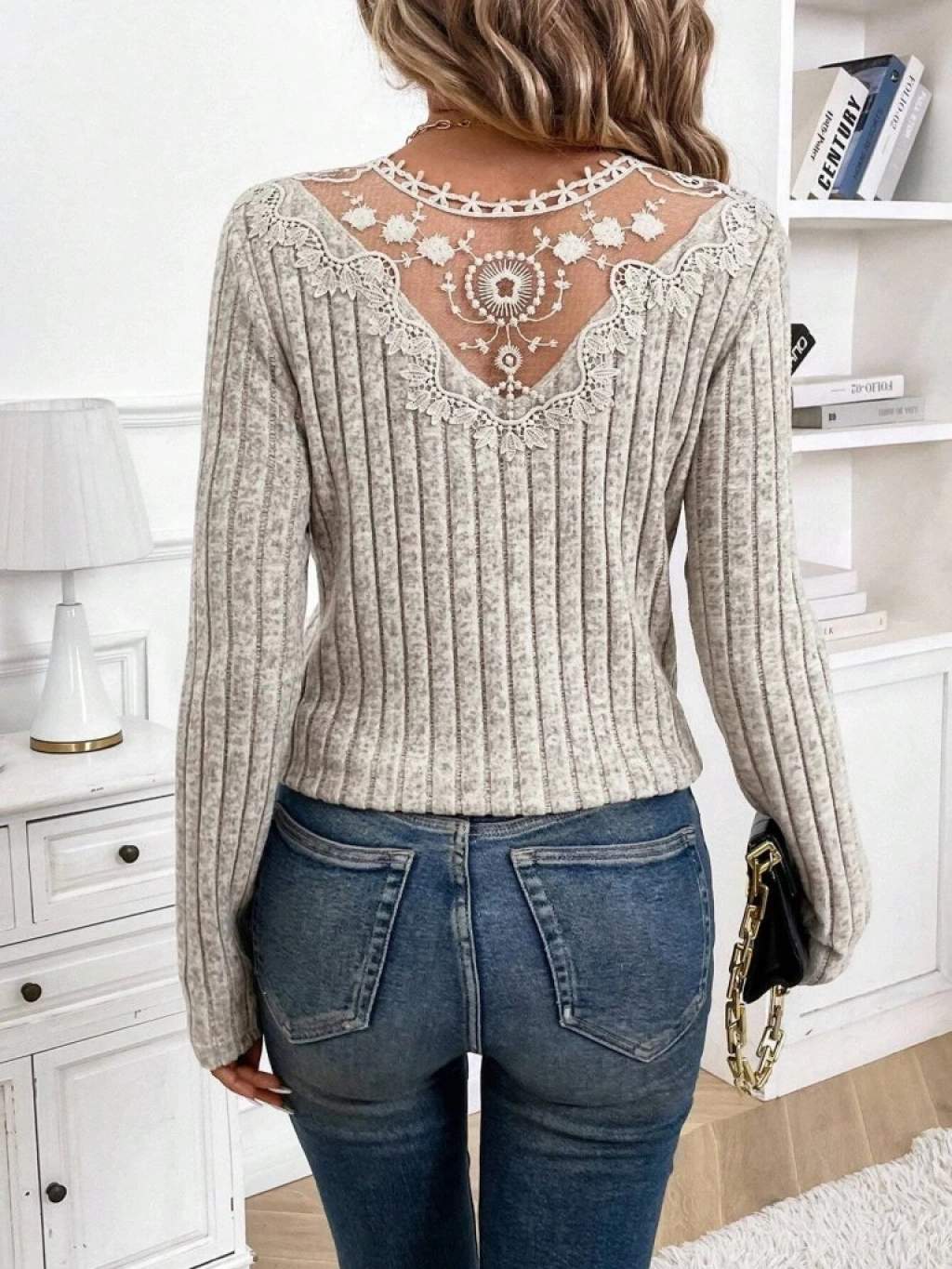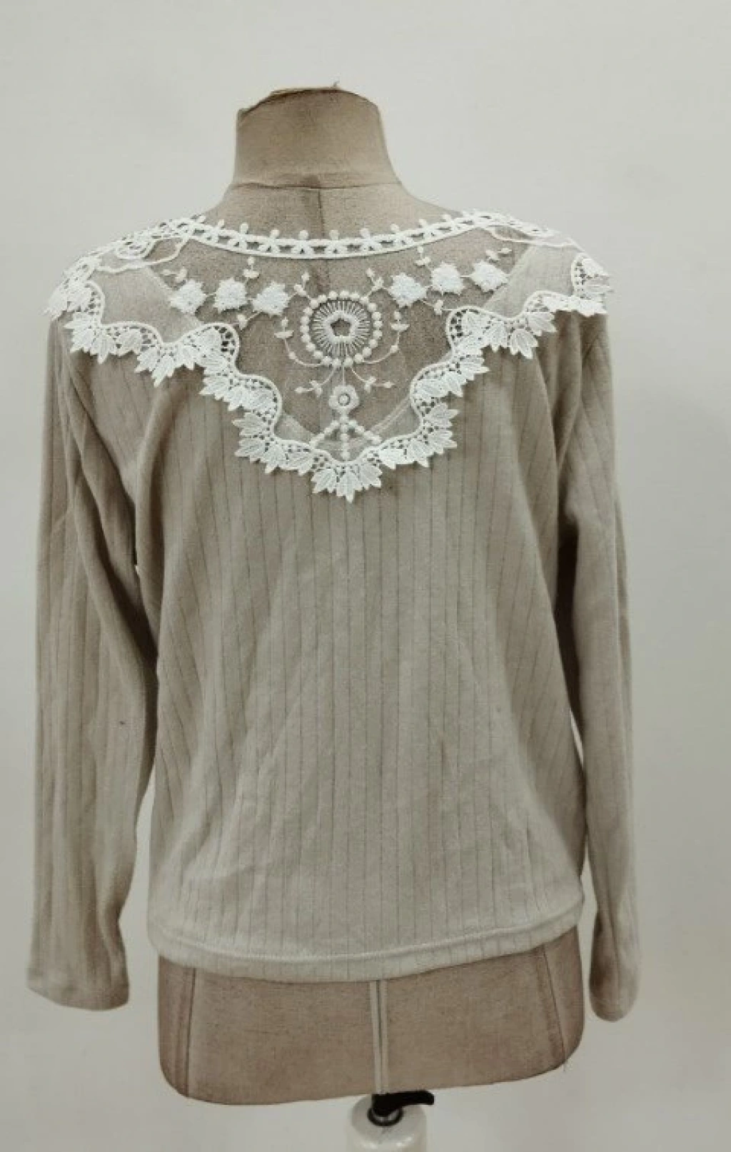 Kadın Uzun Kollu V Yakalı Arkadan Dantel Detaylı şardonlu Kaşkorse Bluz