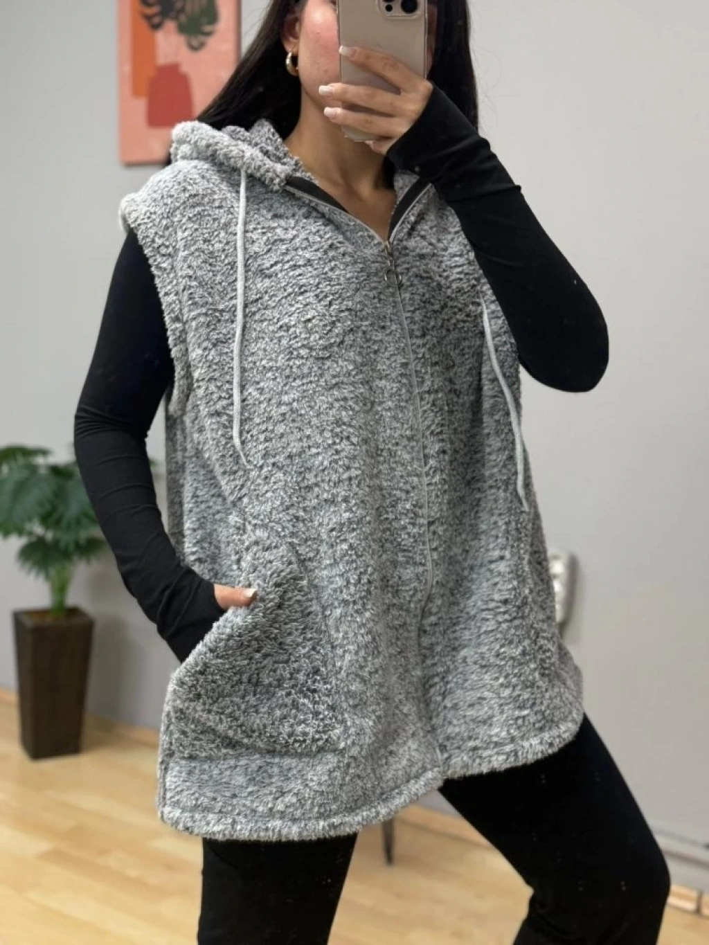 Kadın Kapüşon Ve Fermuar Detay Welsoft Kolsuz Yelek