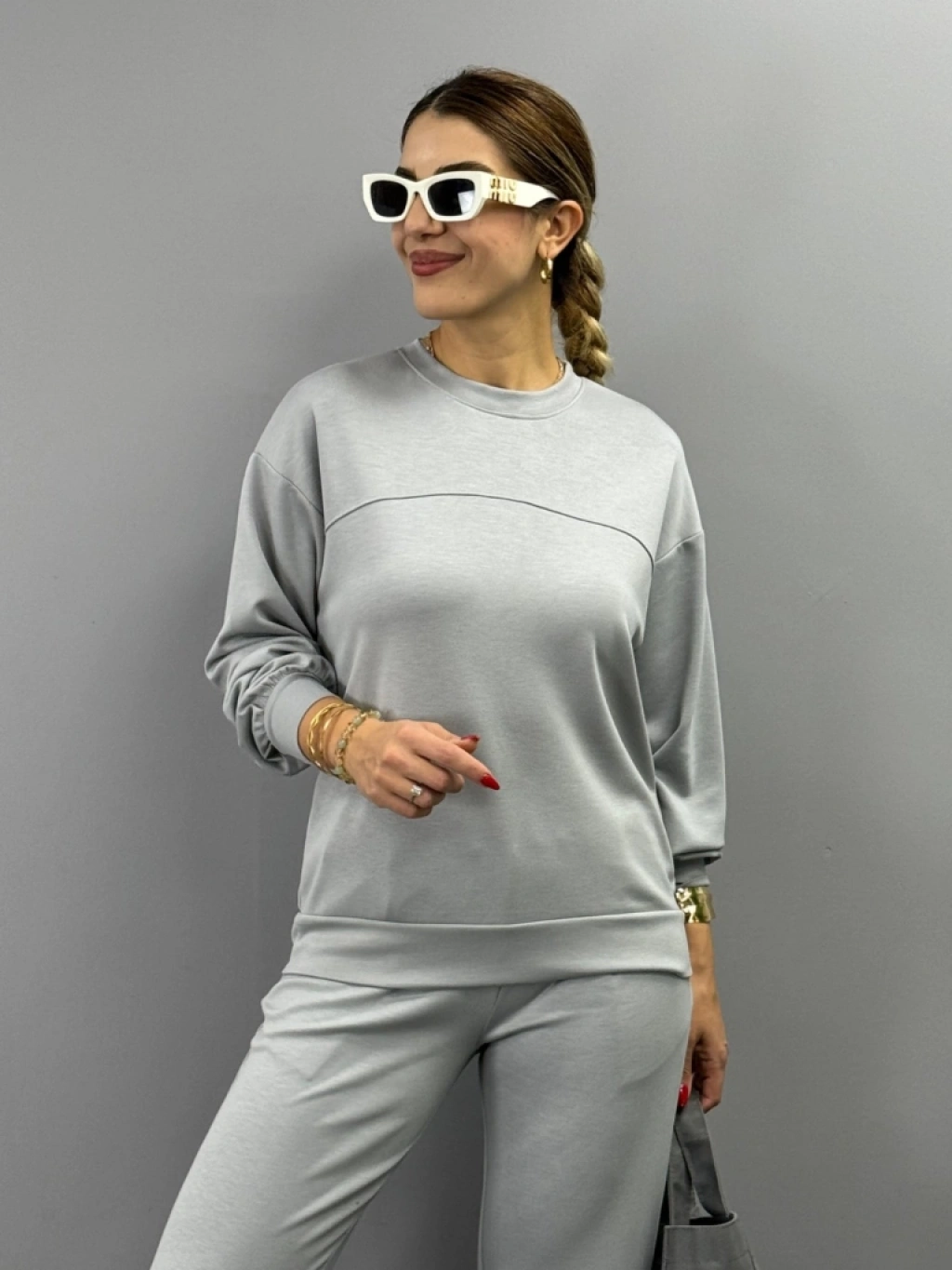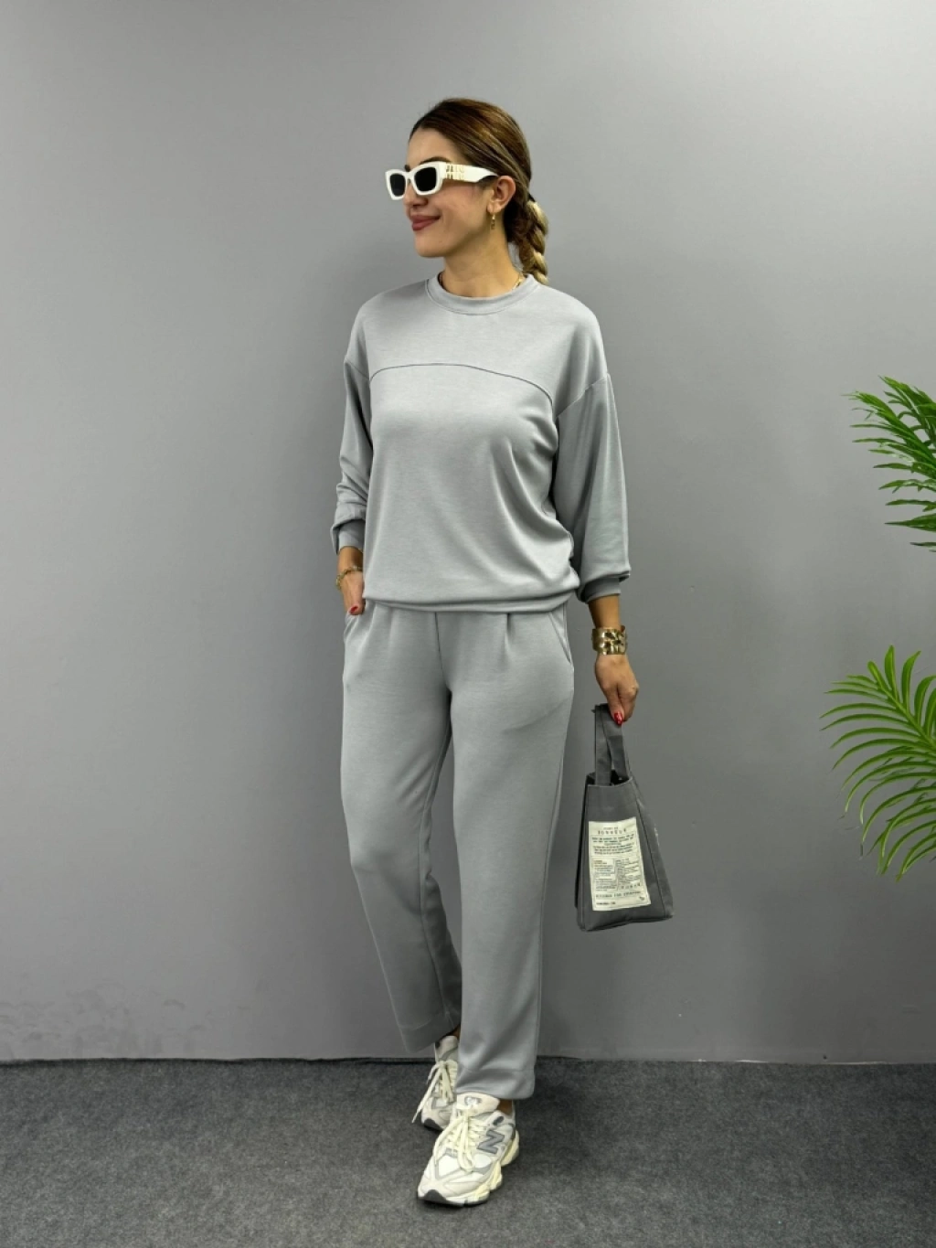 Kadın Uzun Kollu Bisiklet Yaka Viskon Iki Iplik Bluz Ve Pantolon Ikili Takım