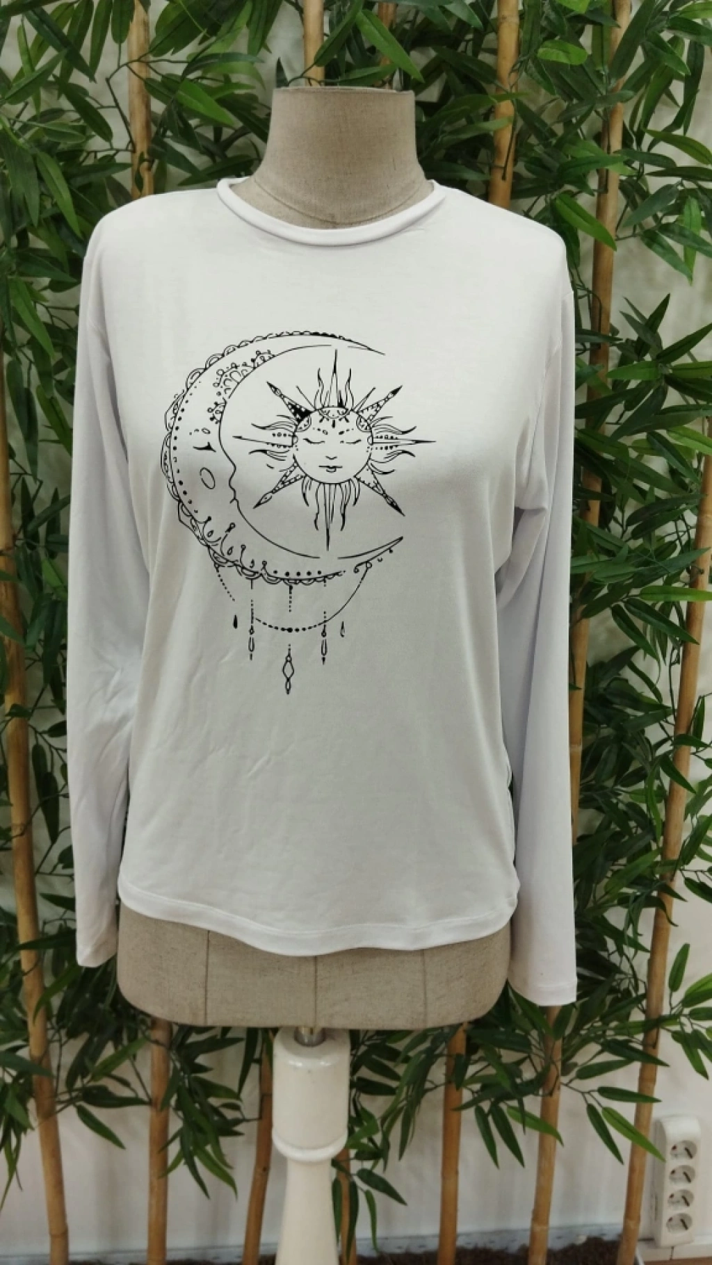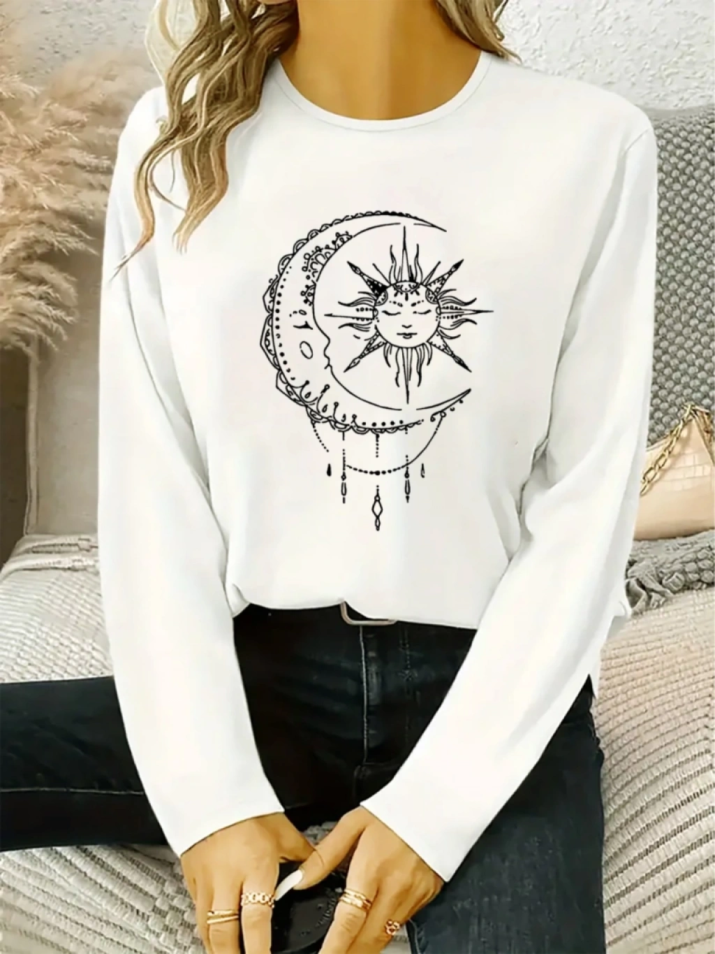 Kadın Uzun Kollu Bisiklet Yaka Ay Baskılı Viskon Bluz