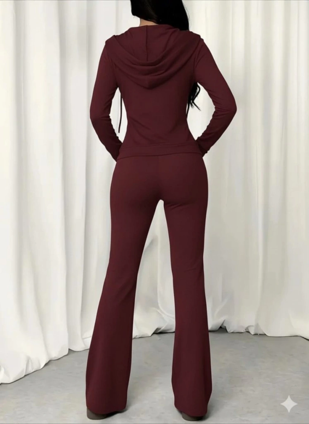 Kadın Uzun Kollu Kapşonlu Bağcıklı önü Fermuarlı Viskon Iki Iplik Bluz Ve Pantolon Ikili Takım