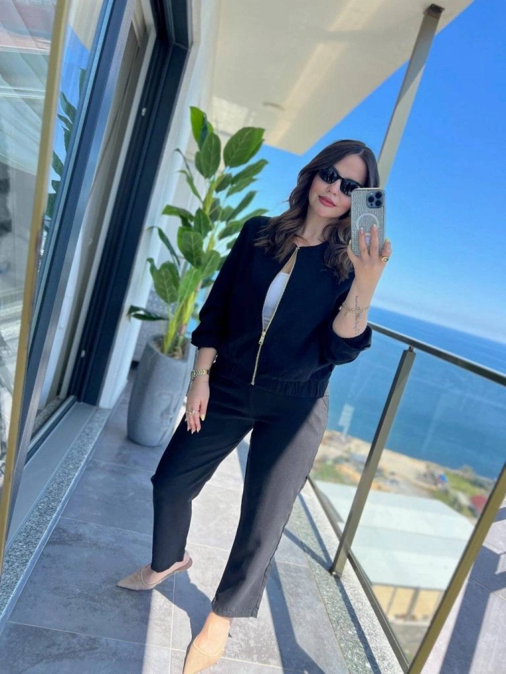 Kadın Uzun Kollu önden Fermuarlı Modal Ceket Ve Pantolon Ikili Takım