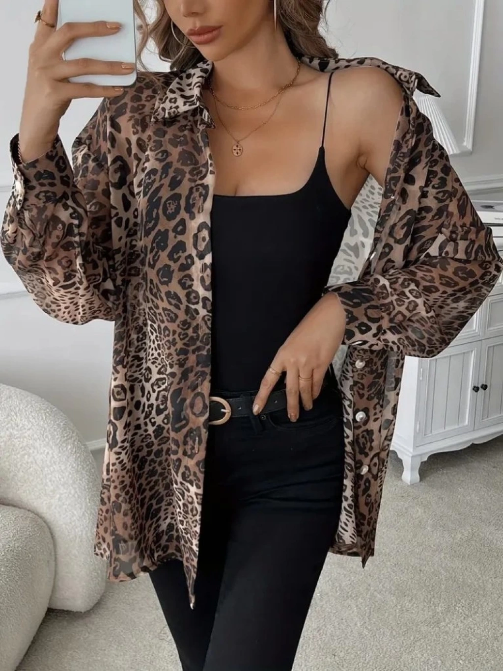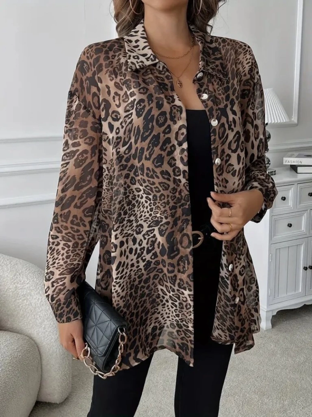 Kadın Uzun Kollu Yakalı önden Düğmeli şifon Gömlek