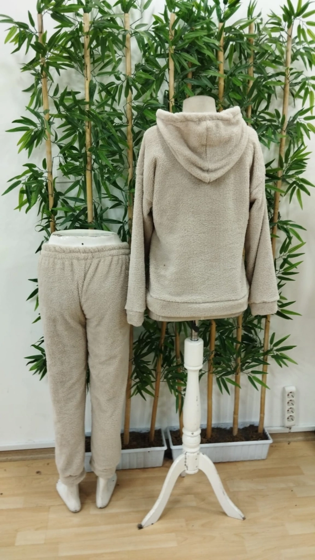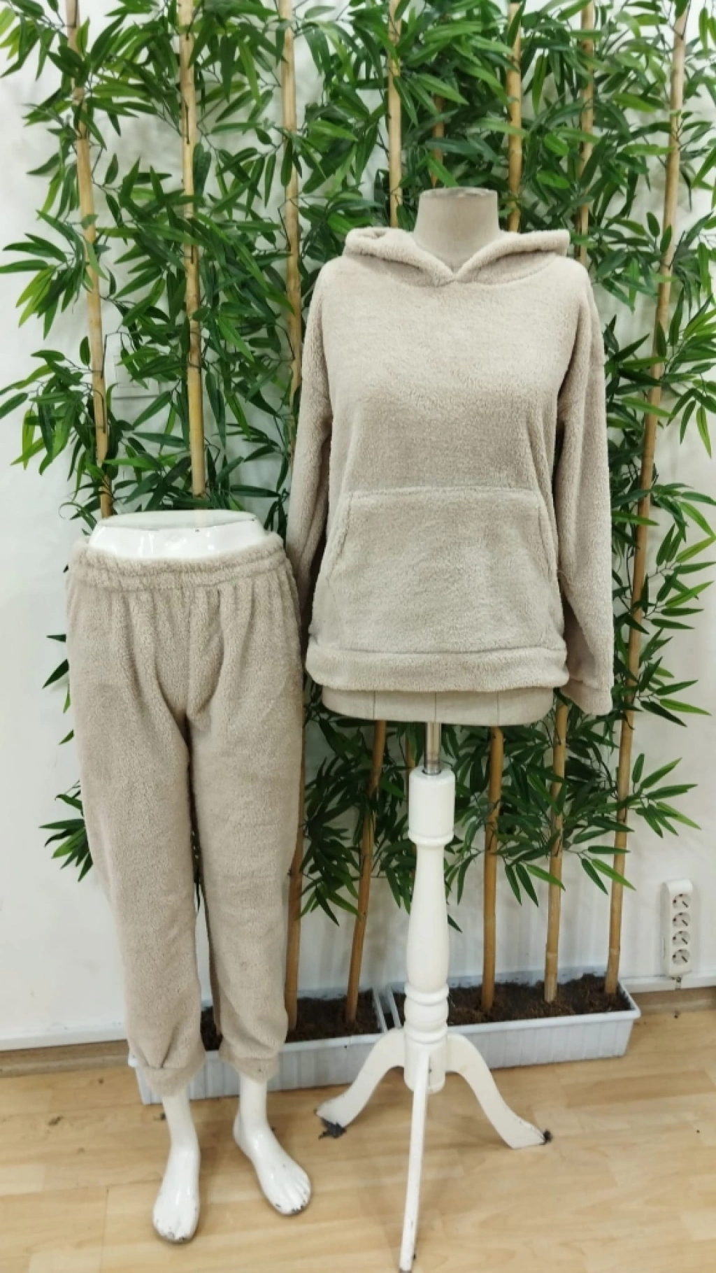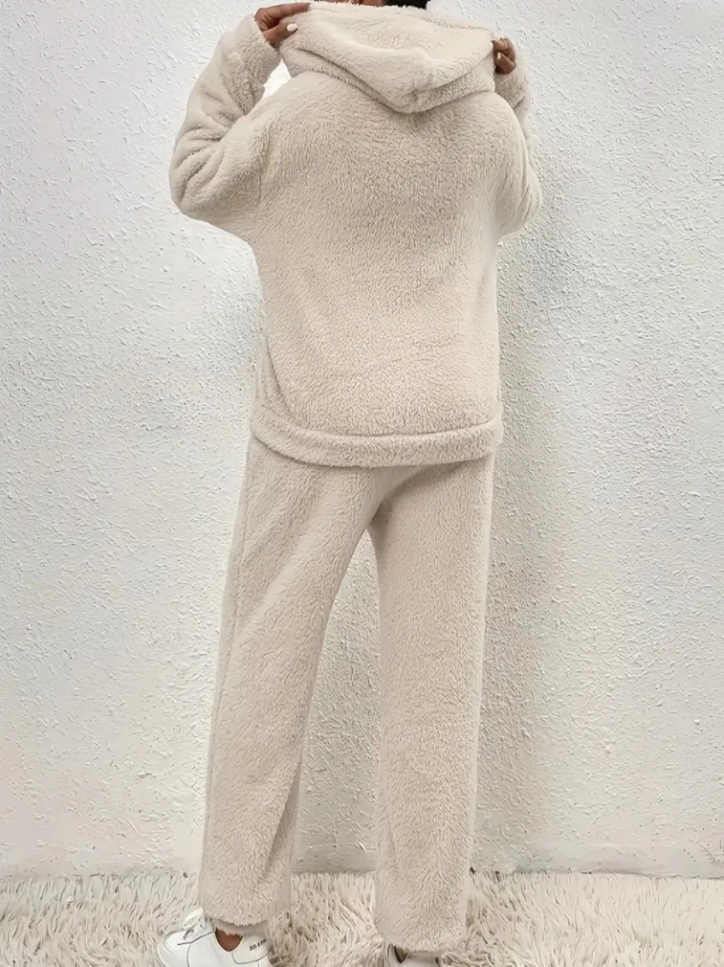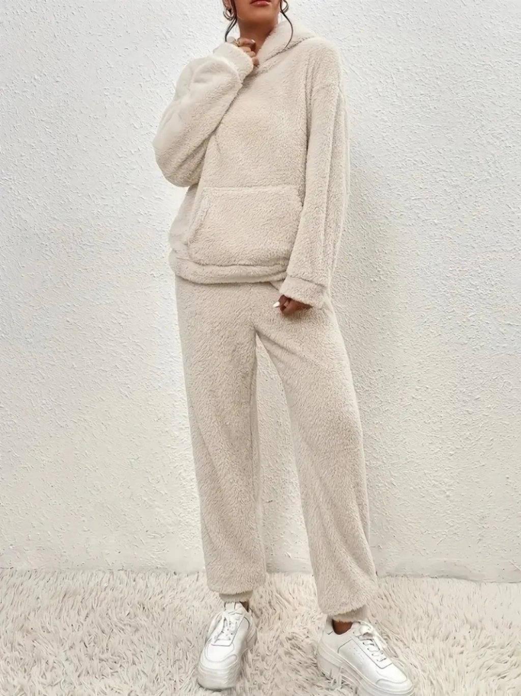Kadın Uzun Kollu Kapşonlu önden Cepli Peluş Alt Ve üst Ikili Takım