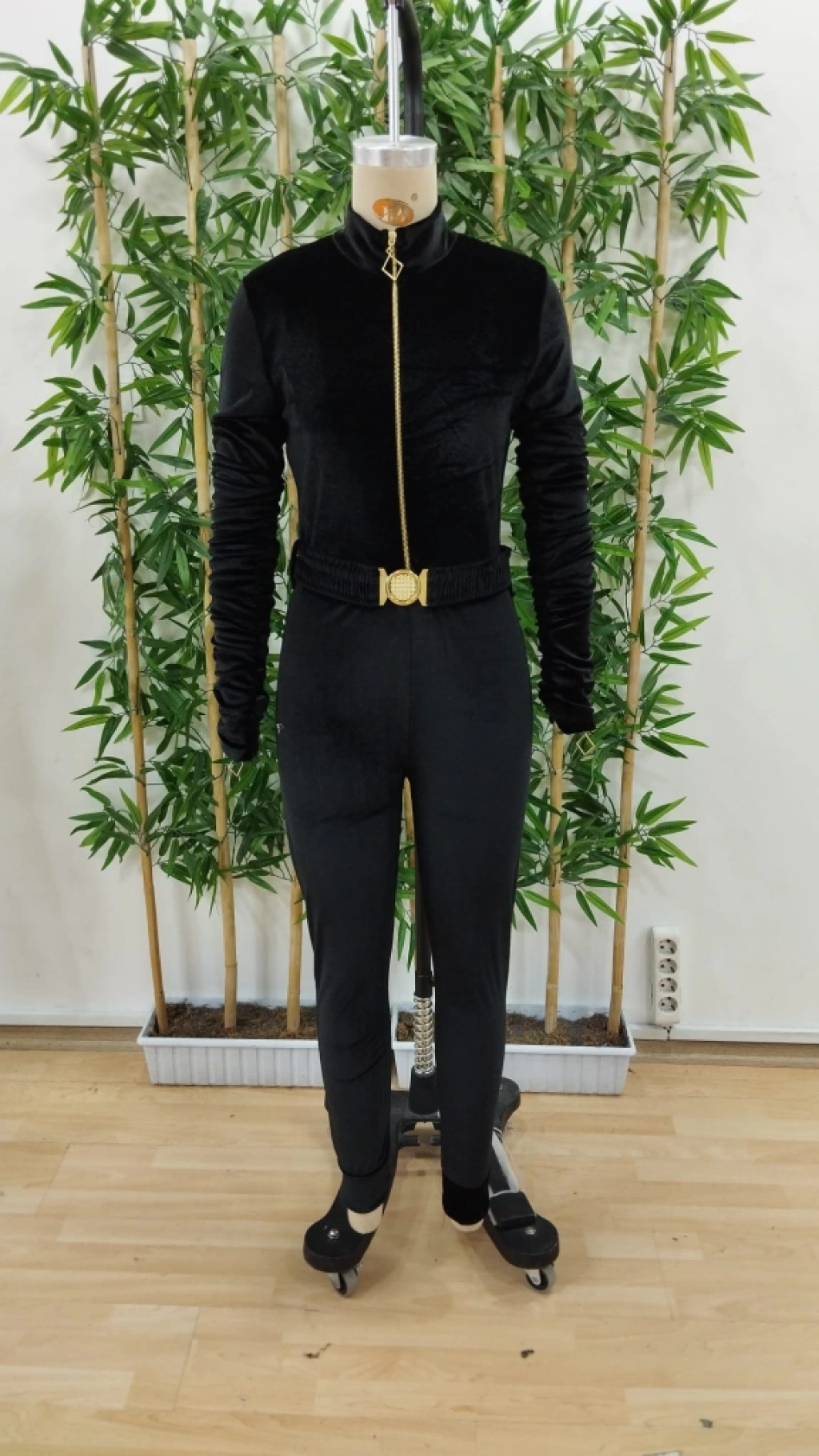 Kadın Uzun Kollu önden Fermuar Detaylı Kemerli Kadife Tulum