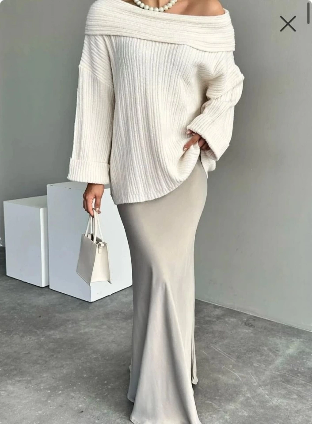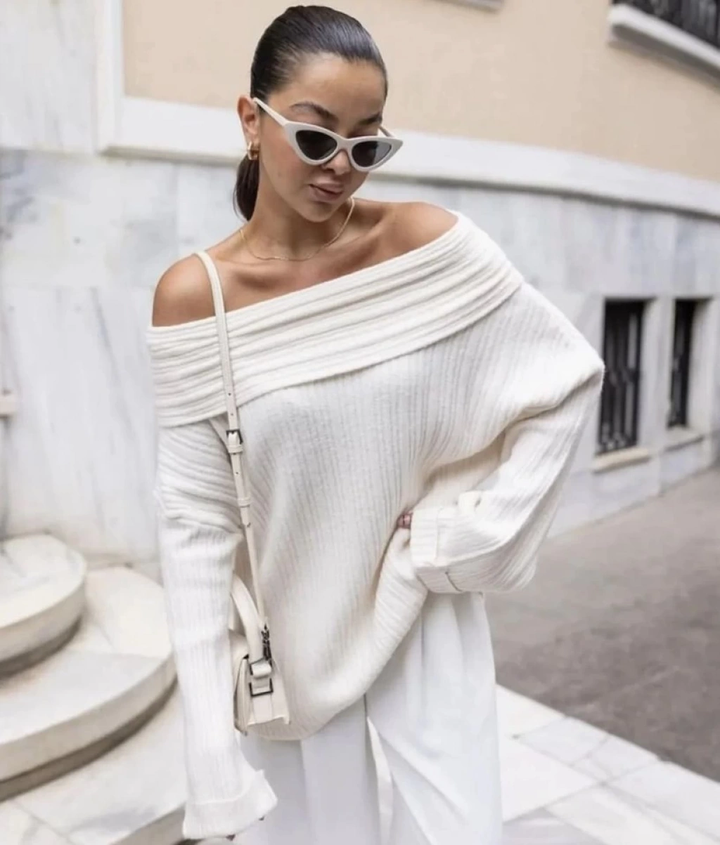 Kadın Uzun Kollu Katlama Detay Madonna Yaka Salaş Kazak