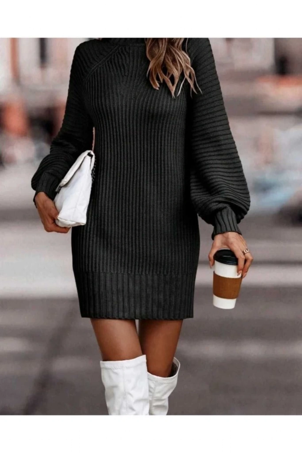 Kadın Uzun Kollu Balıkçı Yaka Mini Triko Elbise