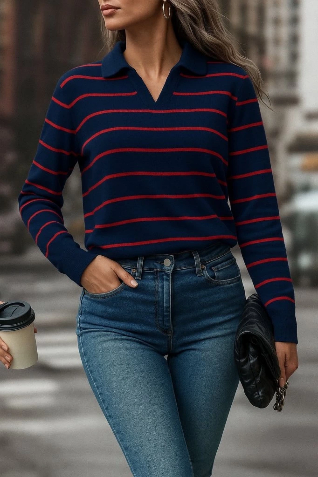 Kadın Uzun Kollu V Yaka çizgili Triko Bluz
