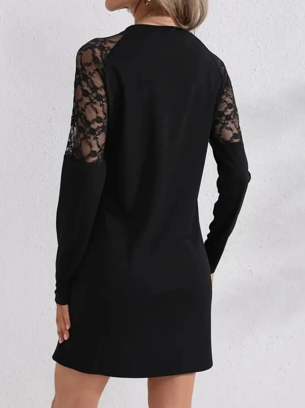Kadın Uzun Kollu Bisiklet Yaka Dantel Detaylı Visk8n Iki Iplik Düğmeli Mini Elbise