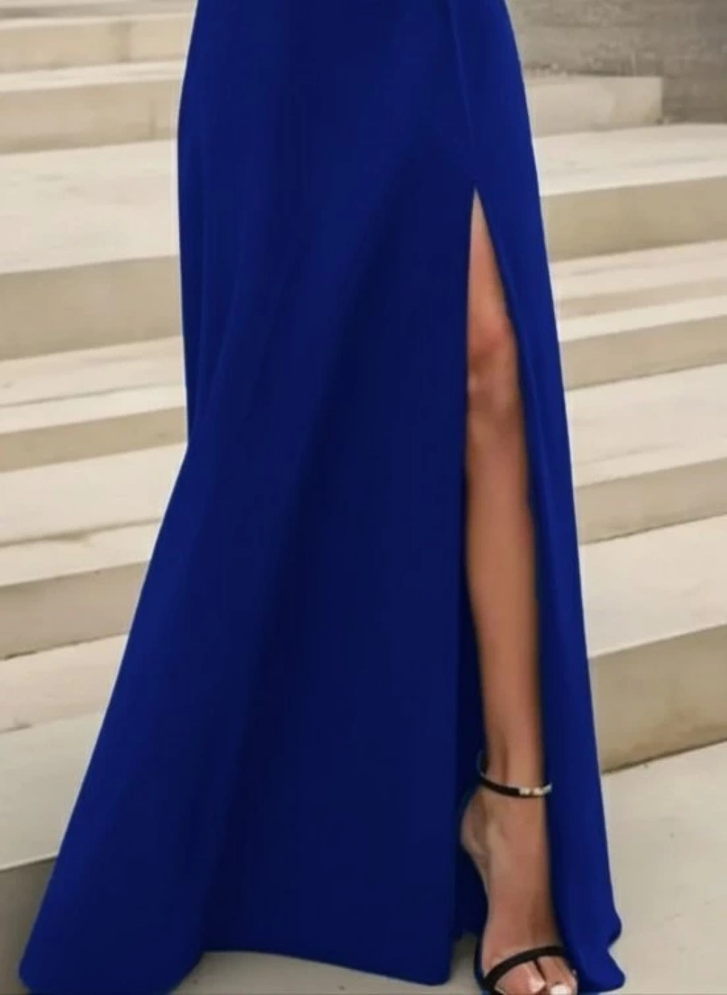 Kadın Uzun Kollu Madonna Yakalı Yırtmaç Detaylı Uzun Ithal Krep Elbise
