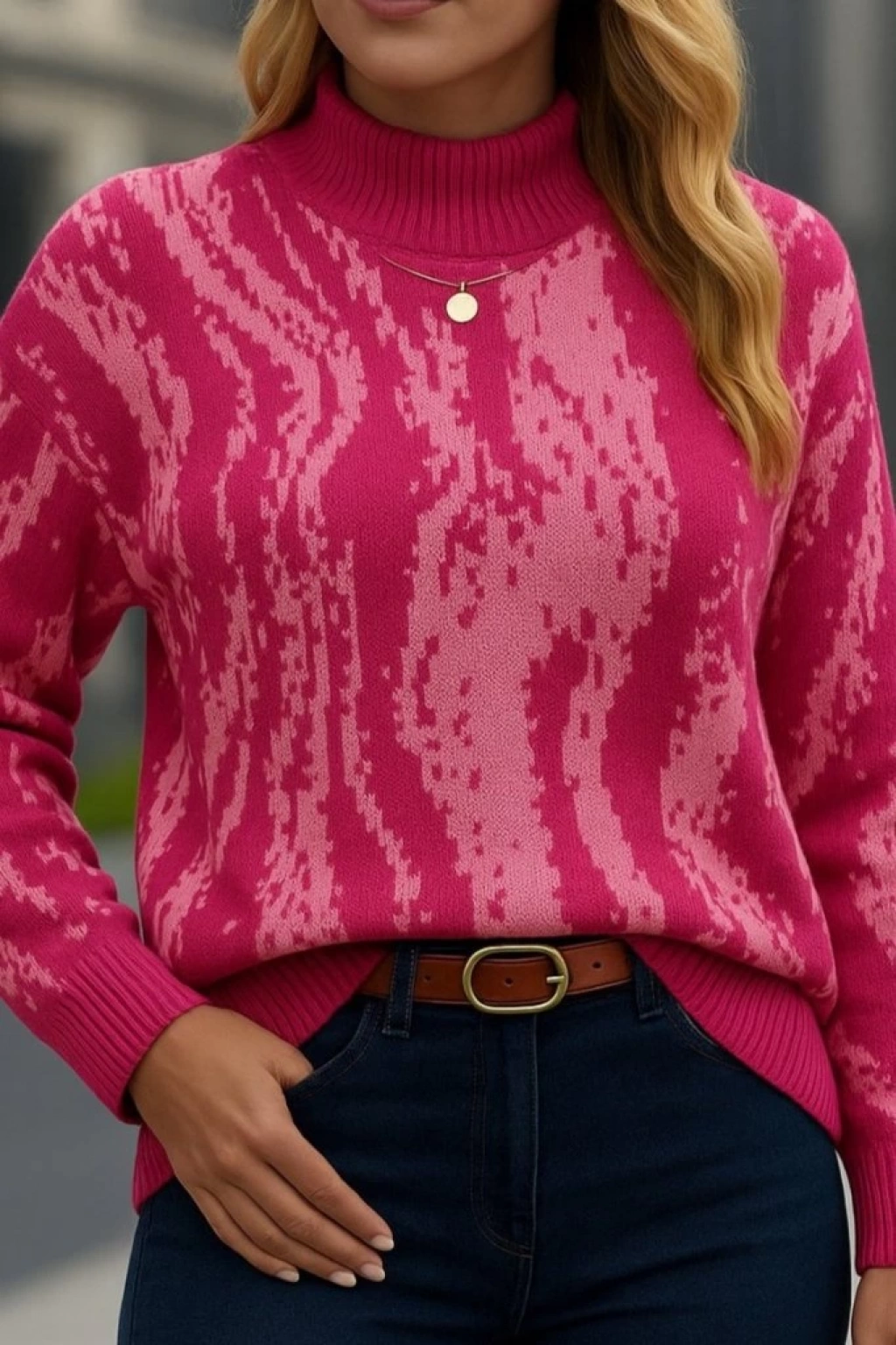 Kadın Uzun Kollu Balıkçı Yaka çok Renkli Triko Bluz