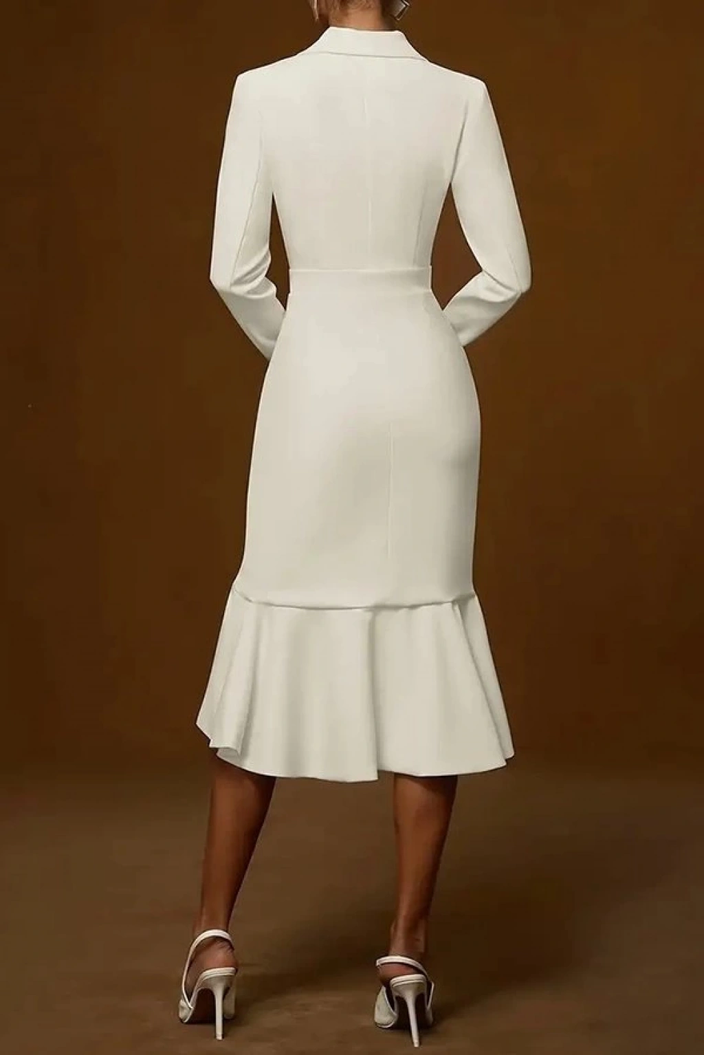 Kadın Uzun Kollu Yakalı Belden Oturtmalı Midi Ithal Krep Elbise