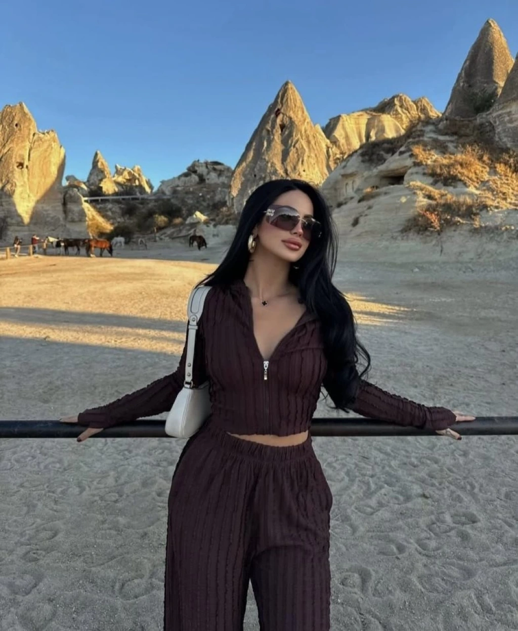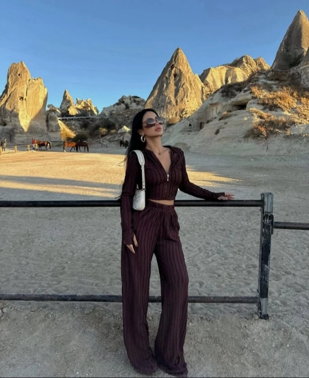 Kadın Uzun Kollu Parmak Geçme Ve Fermuar Detay Kısa Ceket Ve İspanyol Paça Pantolon Ikili Takim