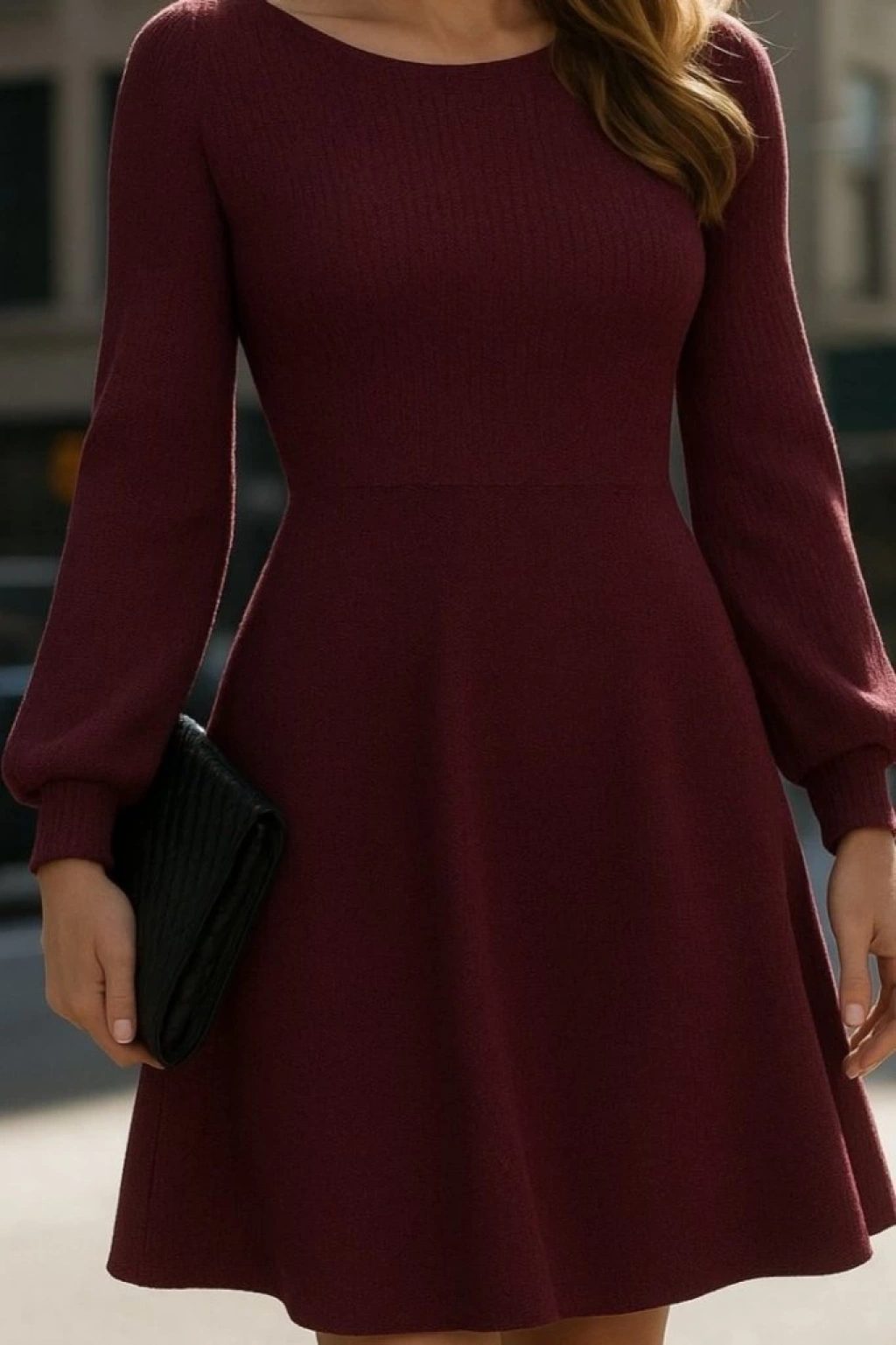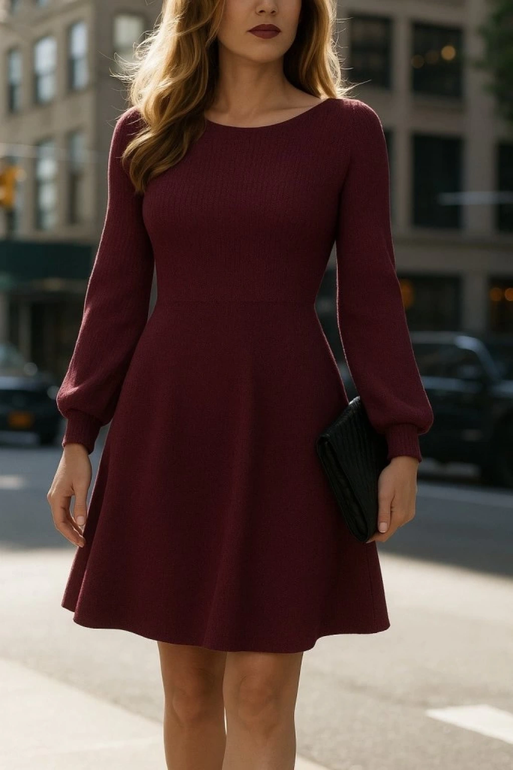 Kadın Uzun Kollu Kayık Yaka Kısa Triko Elbise