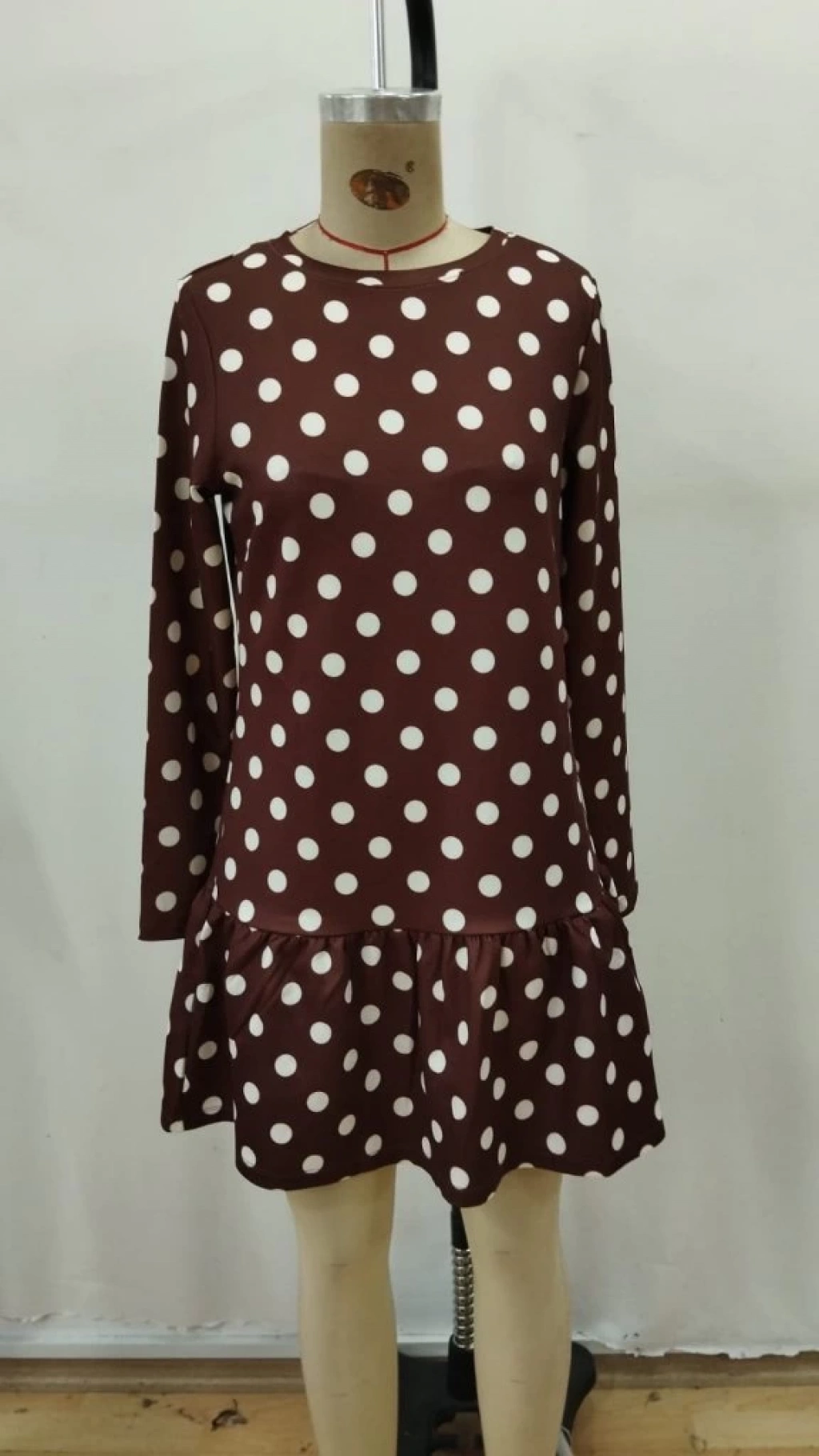 Kadın Uzun Kollu Bisiklet Yaka Fırfırlı Puantiyeli Kısa Modal Elbise