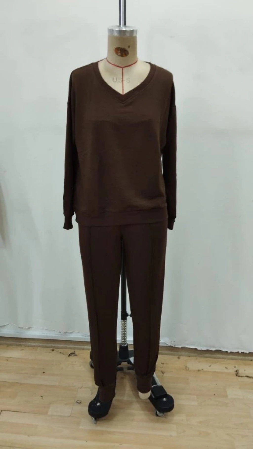 Kadın Uzun Kollu V Yakalı Viskon Iki Iplik Bluz Ve Pantolon Ikili Takım