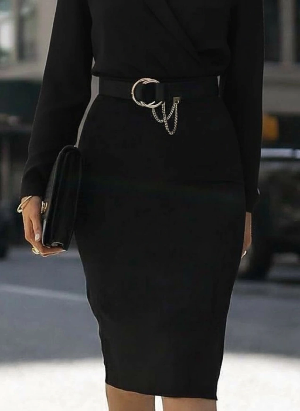 Kadın Uzun Kollu Kruvaze Yaka Janjan Krep Midi Elbise