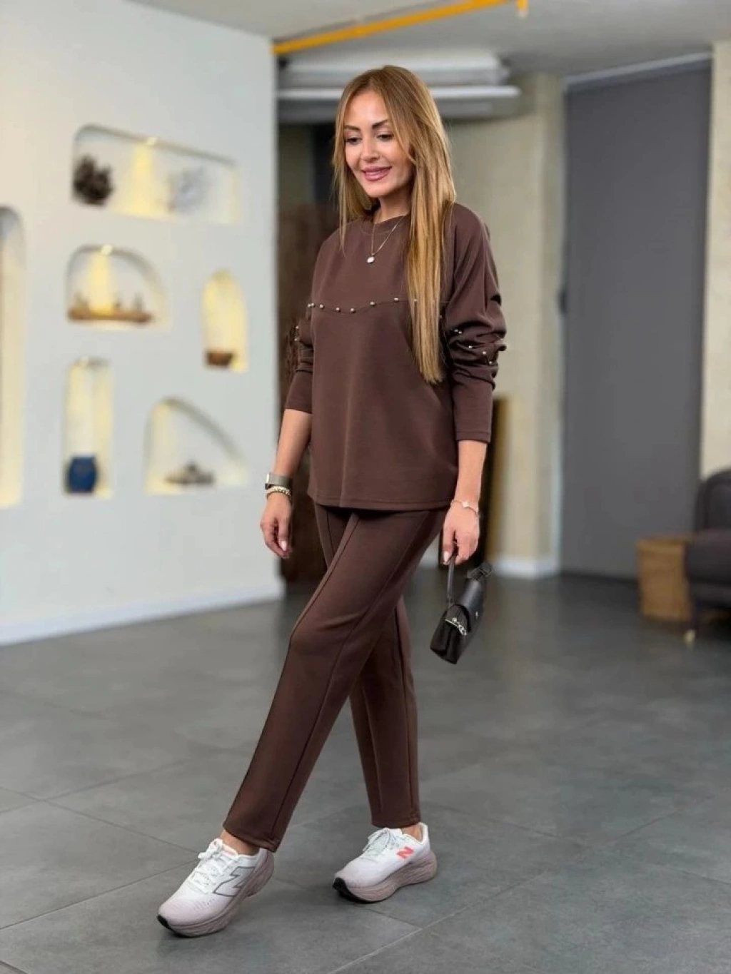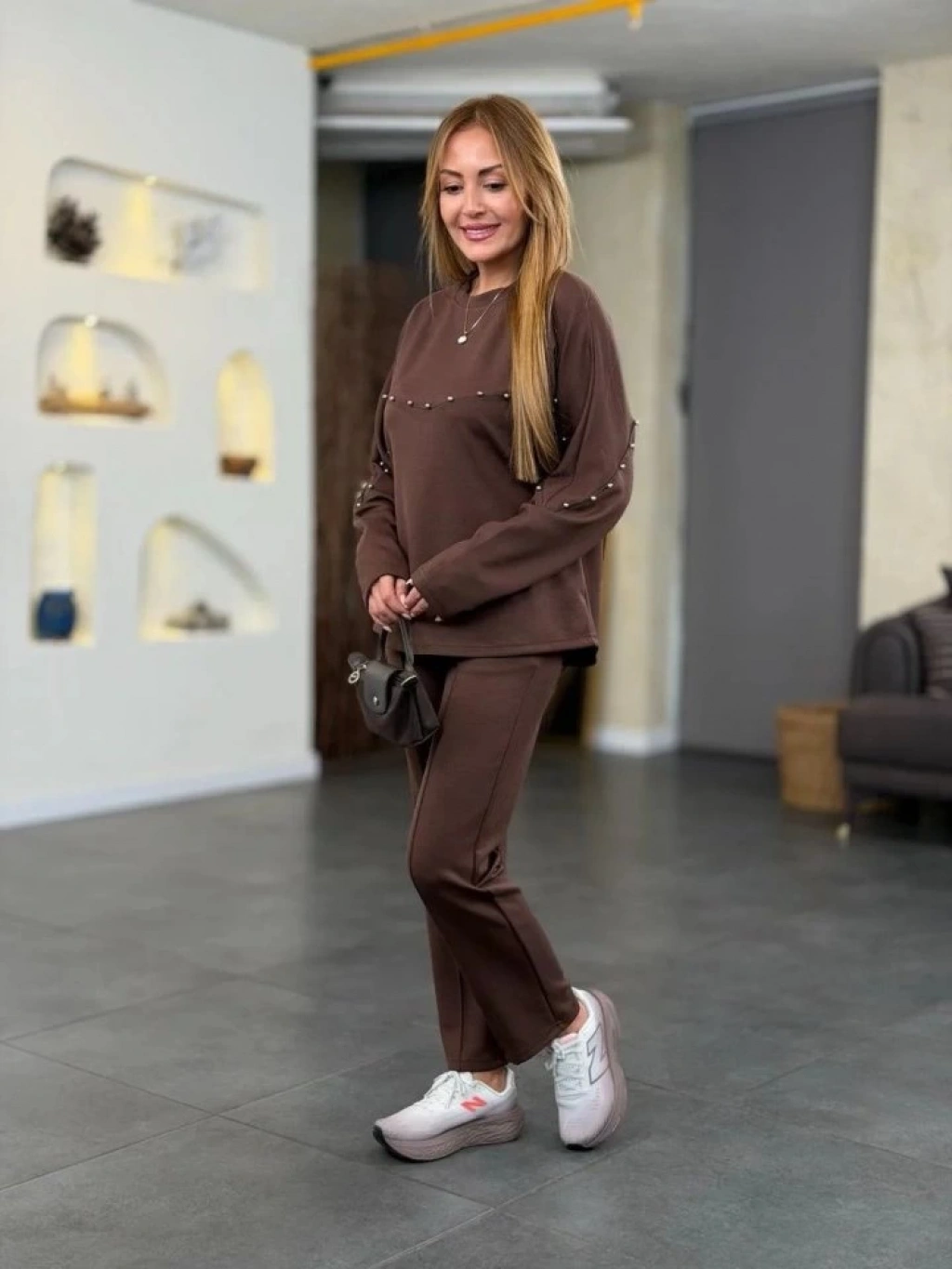 Kadın Inci Detay Modal Kumaş Ikili Takım