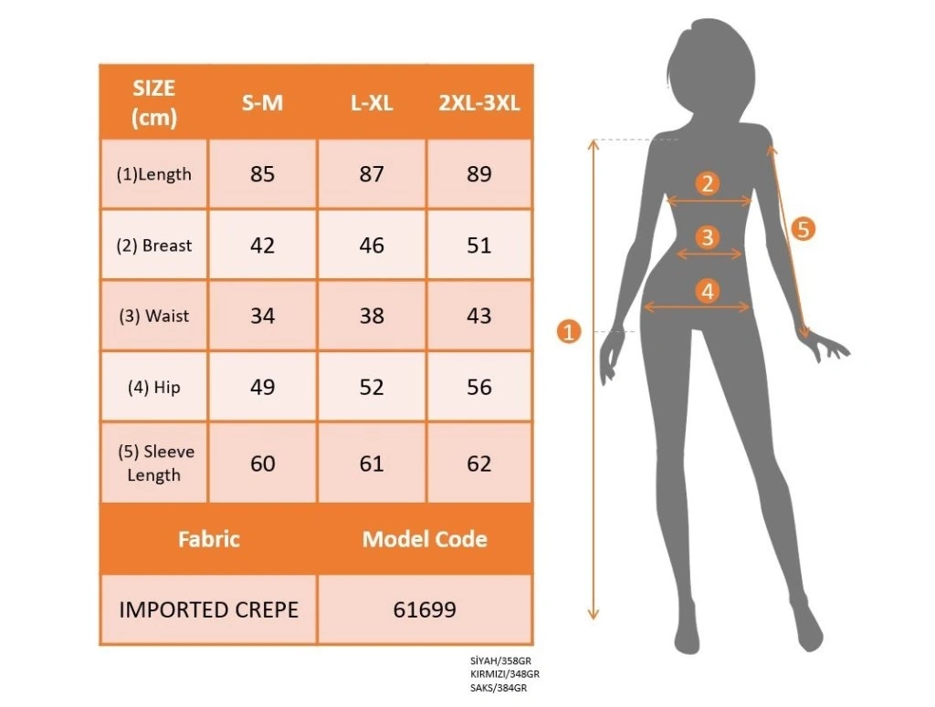 Modelin Ölçüleri: Boy:165, Kg:55, Göğüs:90, Bel:72, Kalça: 100
