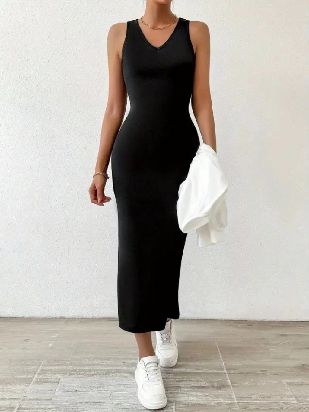 Kadın Askılı Yuvarlak Yaka Viskon Iki Iplik Elbise Ve V Yakalı Bluz Ikili Takım