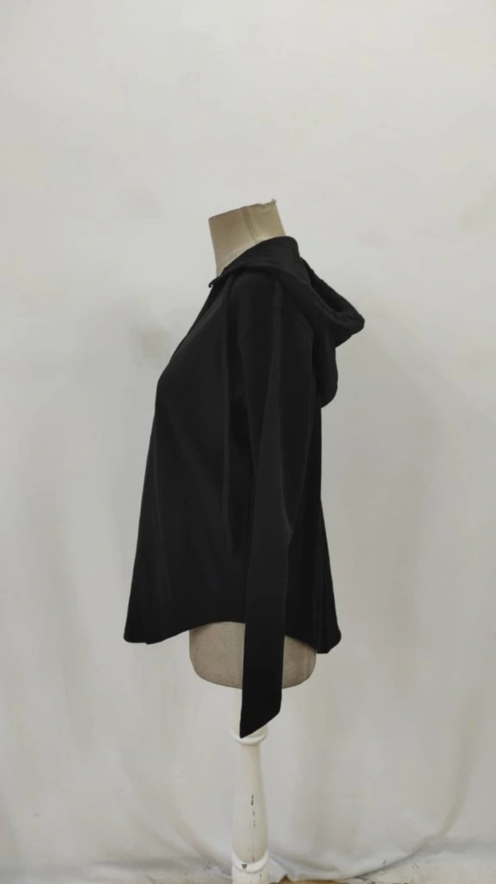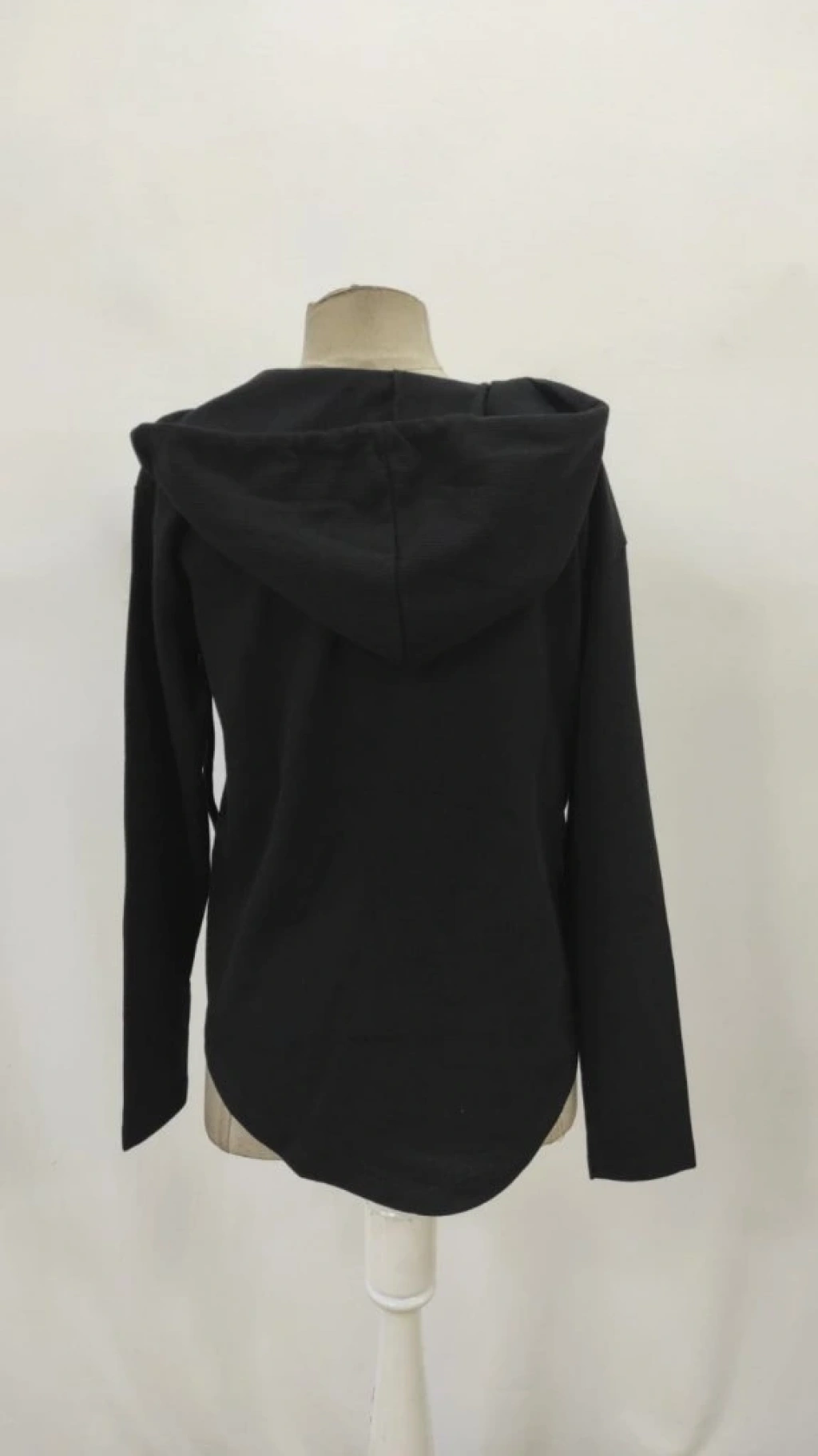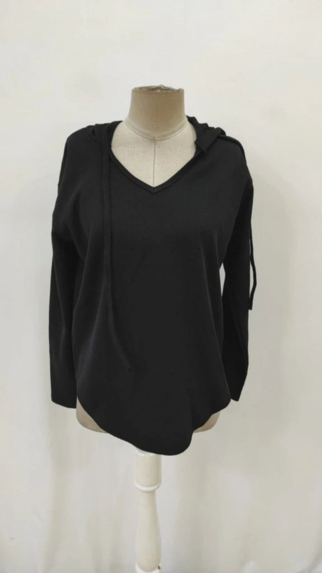 Kadın Uzun Kollu V Yakalı Kapşonlu Waffle Bluz