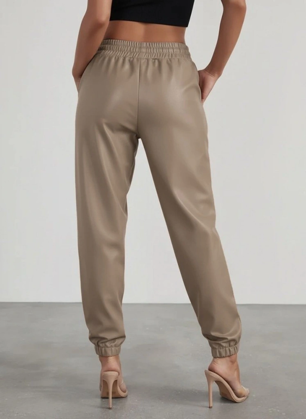 Kadın Yüksek Bel Lastikli önü Düğmeli Deri Pantolon