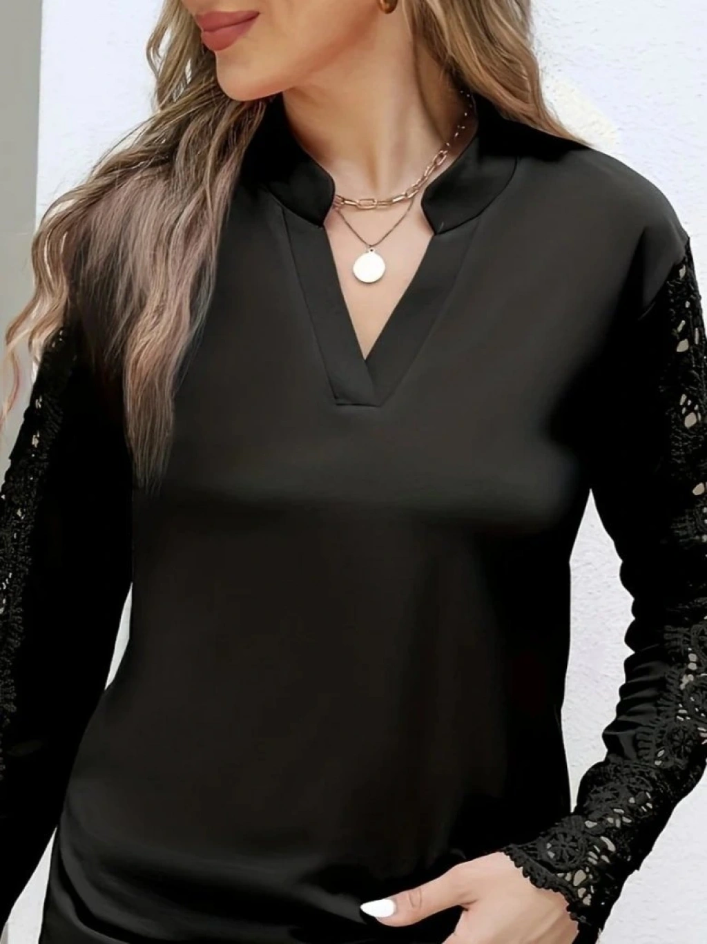 Kadın Uzun Kollu Hakim Yaka Kolları Dantel Detaylı Ithal Krep Bluz