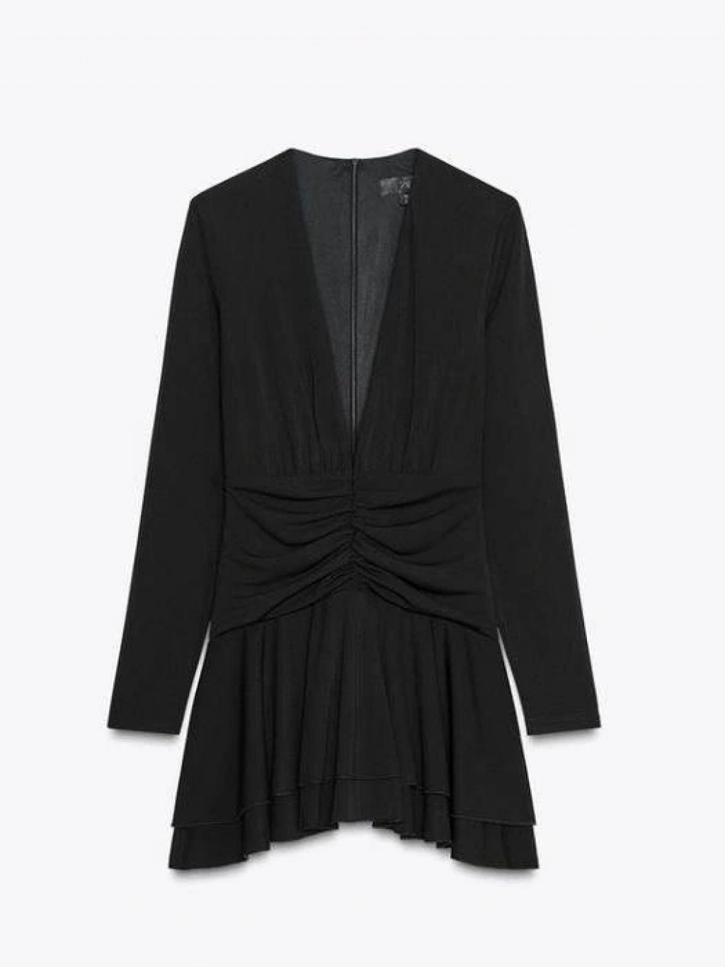 Kadın Uzun Kollu Derin V Dekolte Ve Ek Volan Detay Toparlayıcı şortlu Elbise