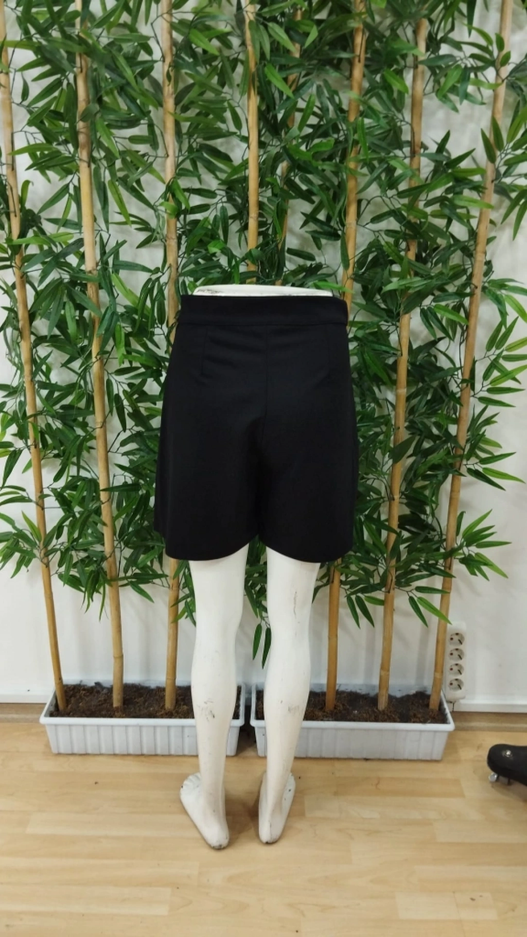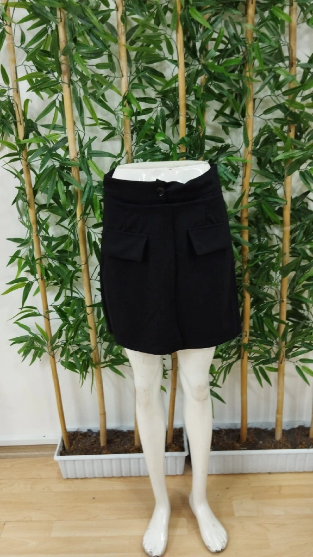 Kadın Yüksek Bel Düğmeli Asimetrik Kesim Cepli Kısa Ithal Krep şort Etek