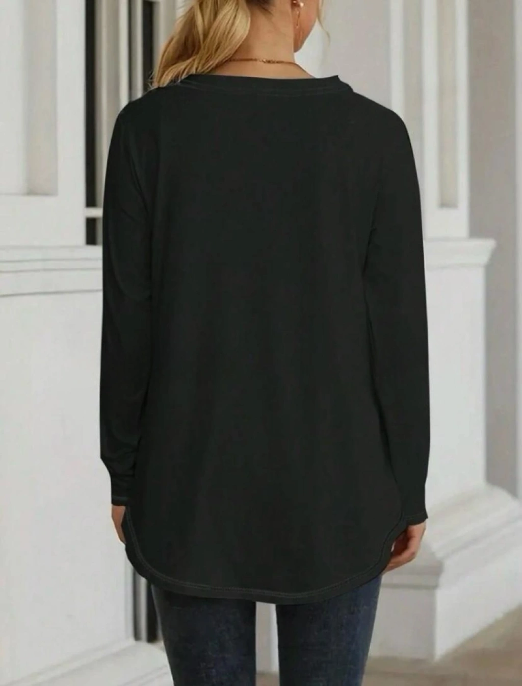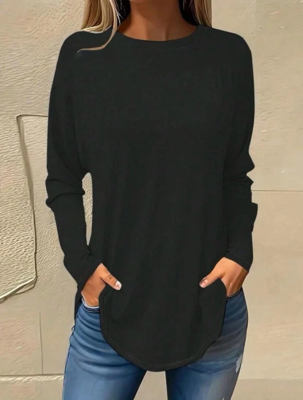Kadın Uzun Kollu Yuvarlak Yaka Salaş Iki Iplik Bluz