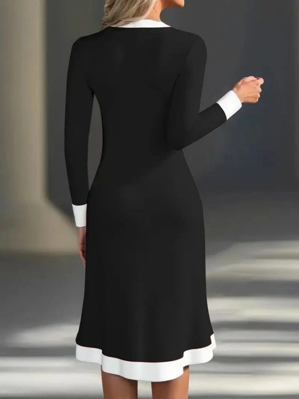 Kadın Uzun Kollu V Yakalı Düğmeli Midi Modal Elbise