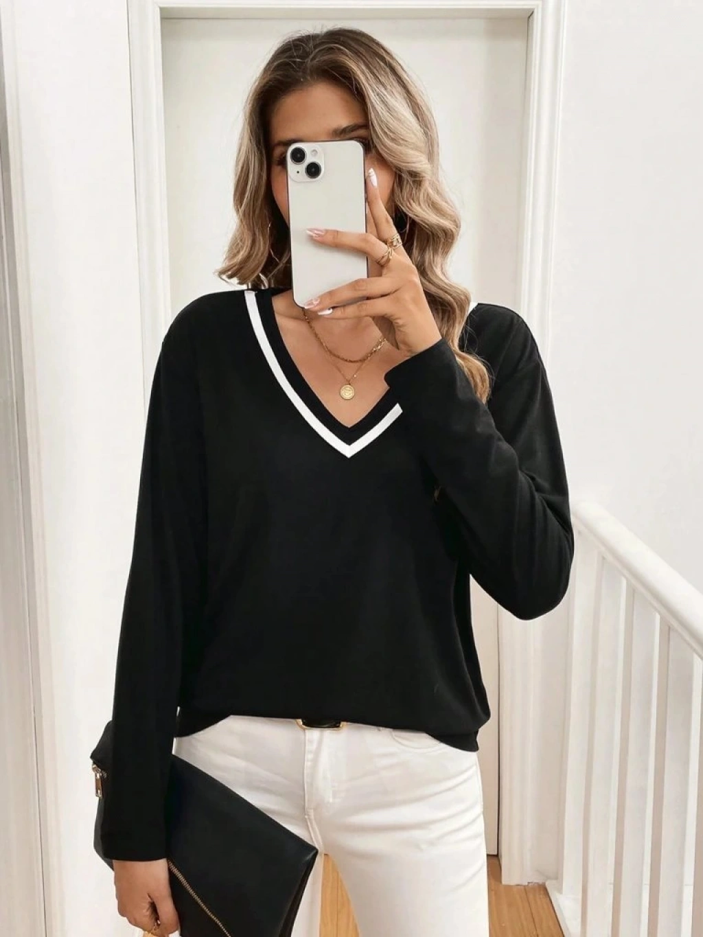 Kadın Uzun Kollu V Yakalı Viskon Iki Iplik Bluz