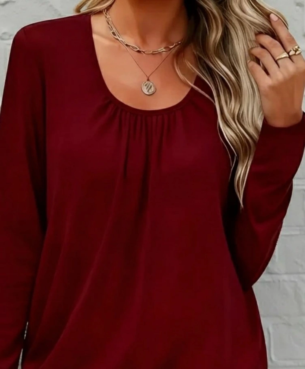 Kadın Uzun Kollu Yuvarlak Yakalı Viskon Bluz