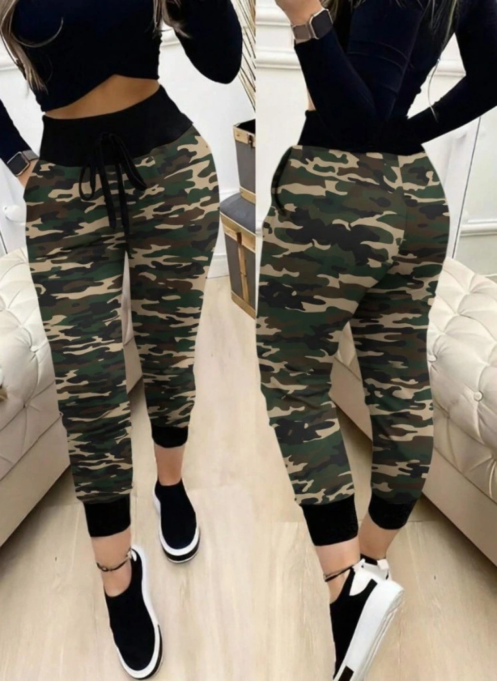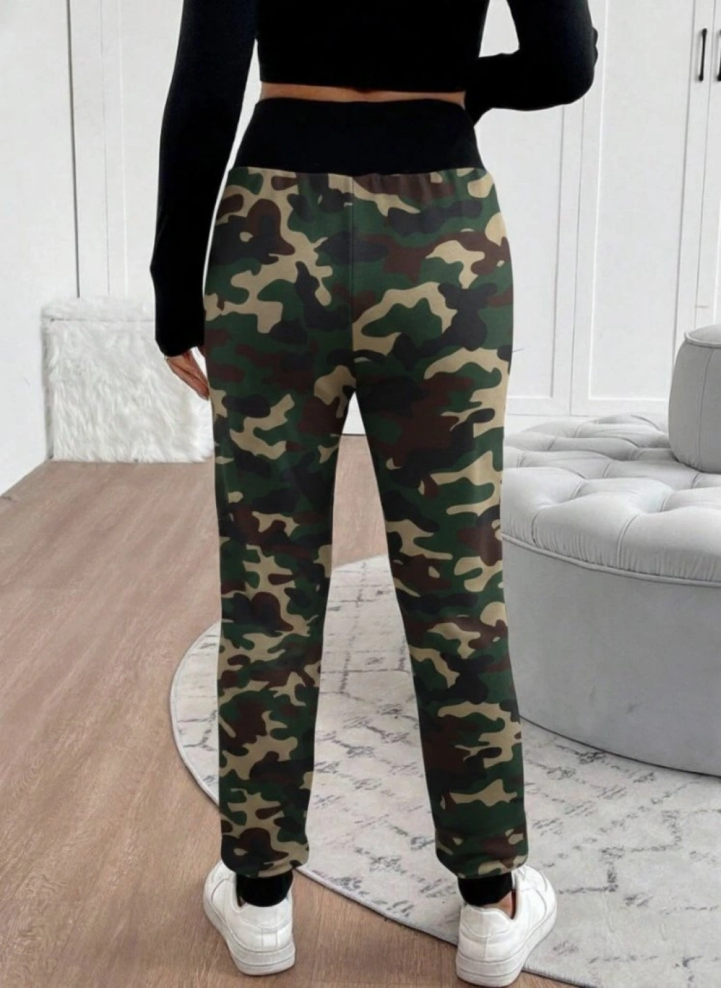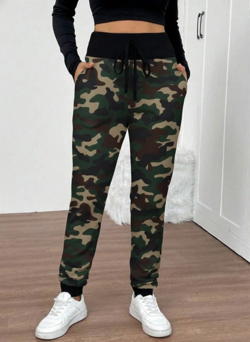 Kadın Yüksek Bel Bağcıklı Desenli Iki Iplik Pantolon