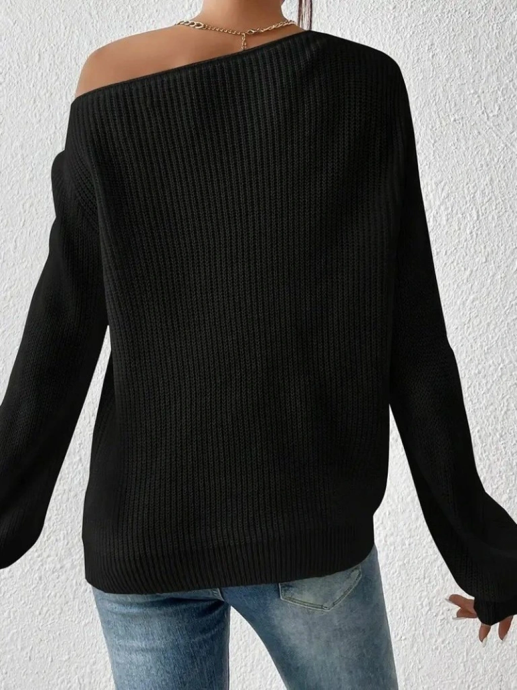 Kadın Uzun Kollu Tek Omuzu Açık Detaylı Triko Bluz