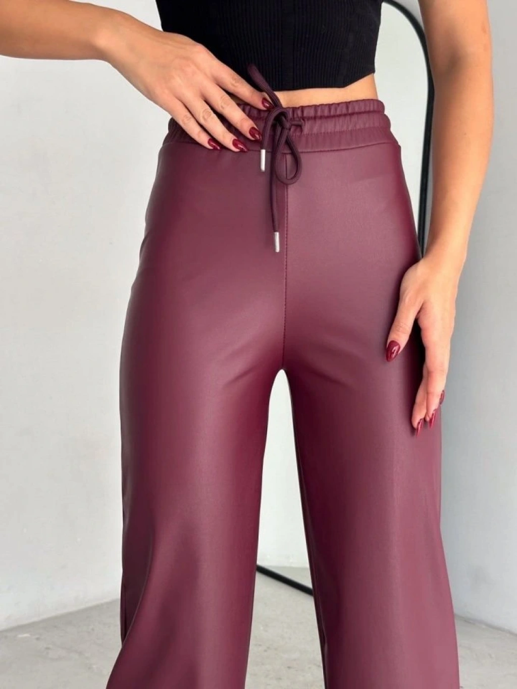 Yüksek Bel Geniş Paça Içi şardonlu Deri Pantolon.