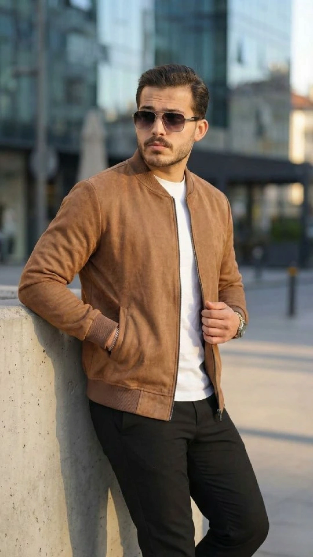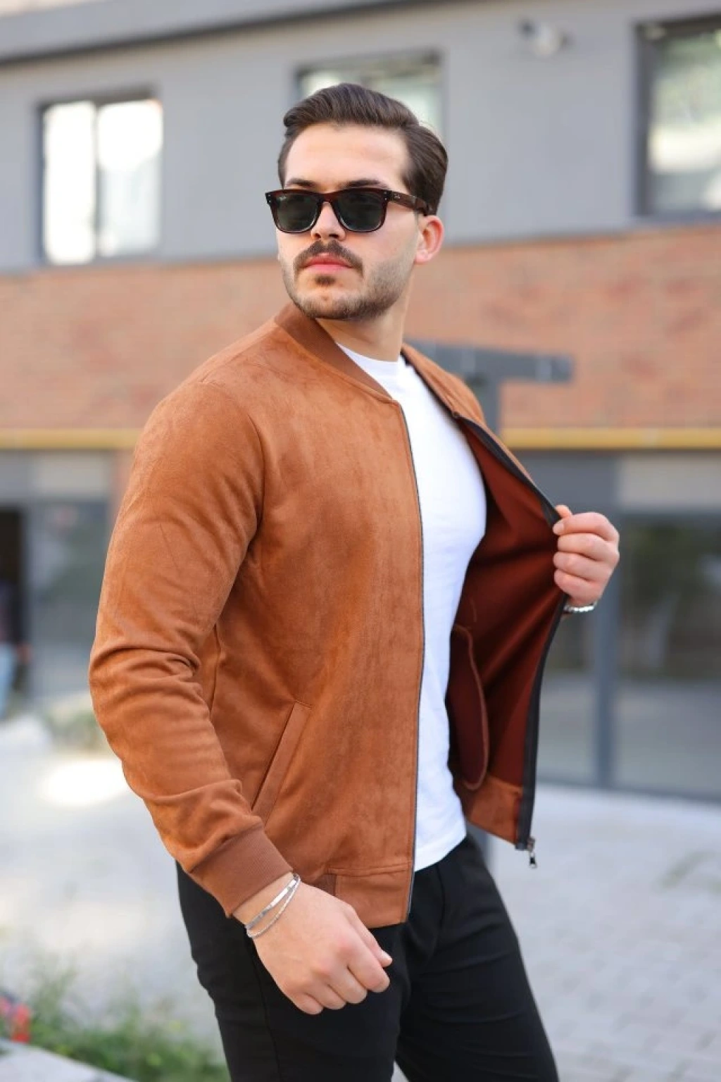 Erkek Scuba Süet Kumaş Bomber Hırka