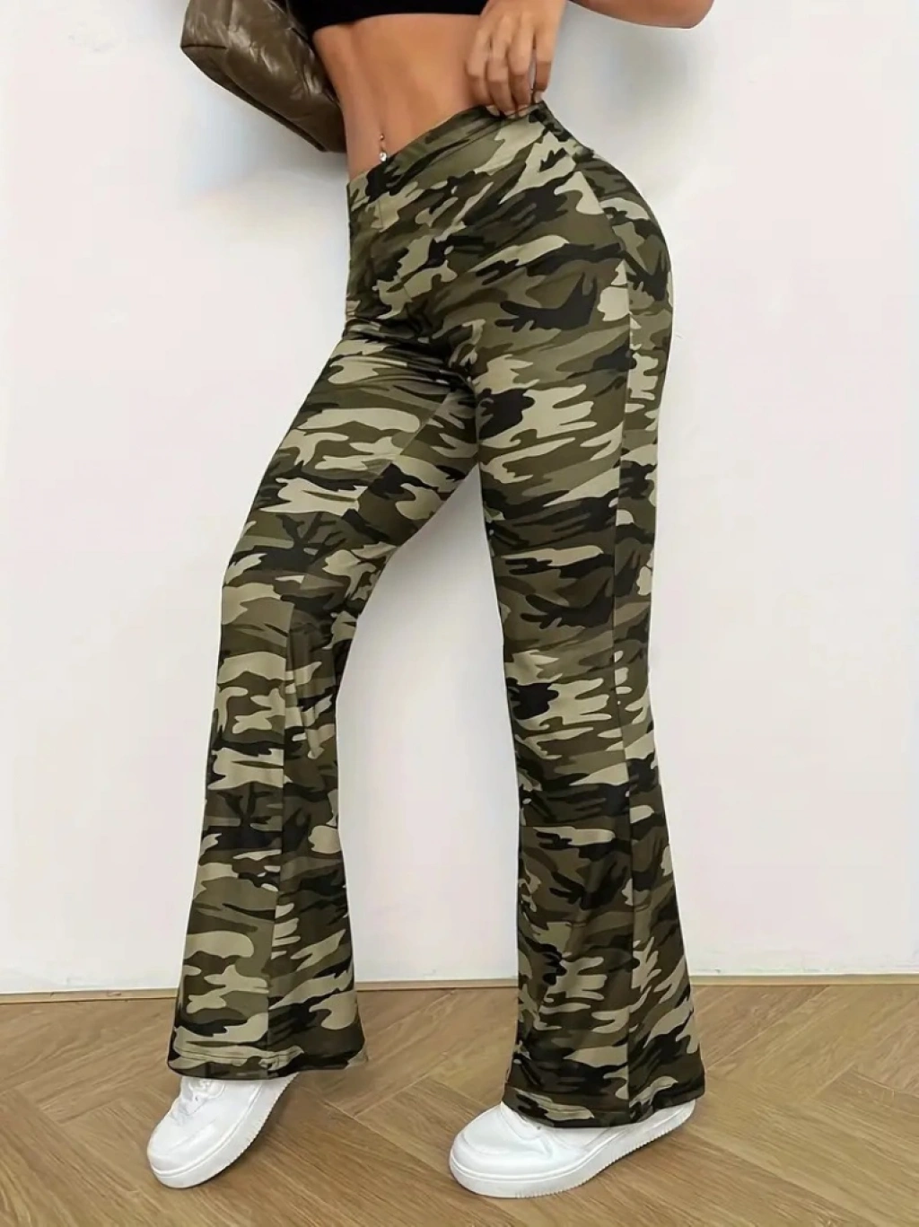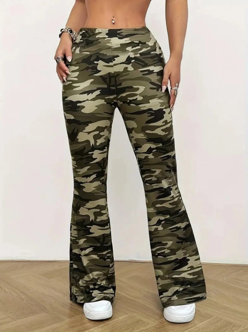 Kadın Yüksek Bel Kamuflaj Desenli Dalgıç Tayt