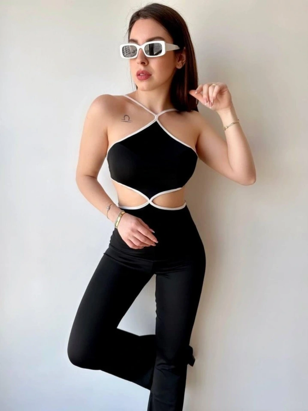 Kadın Halter Yaka Bel Dokolteli Tulum
