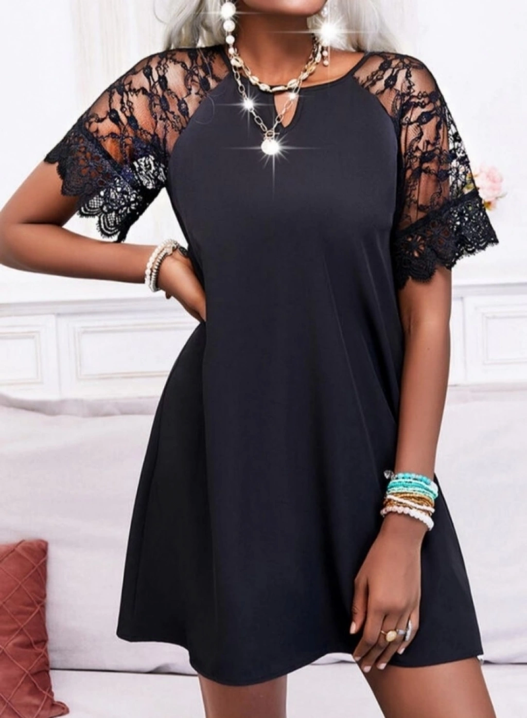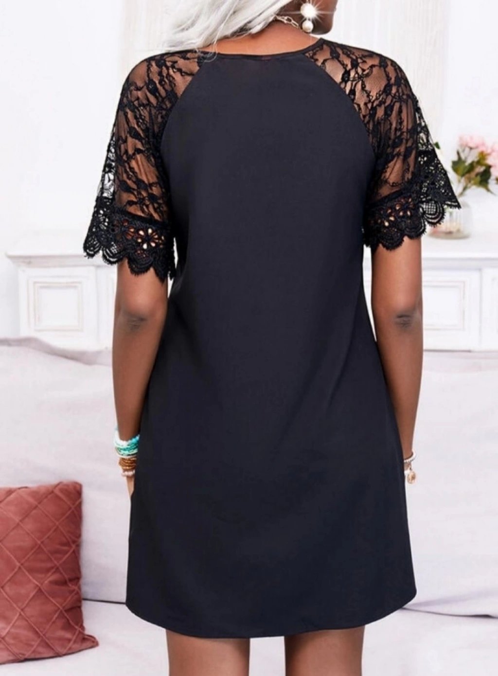 Dantel Detay Krep Elbise