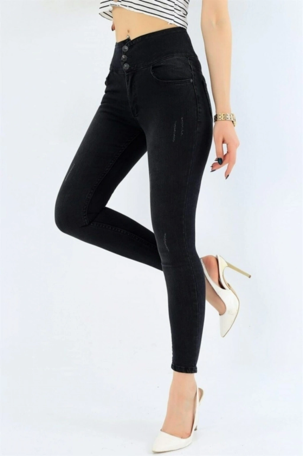 Yüksek Bel Likralı Jean Pantolon 90 Cm