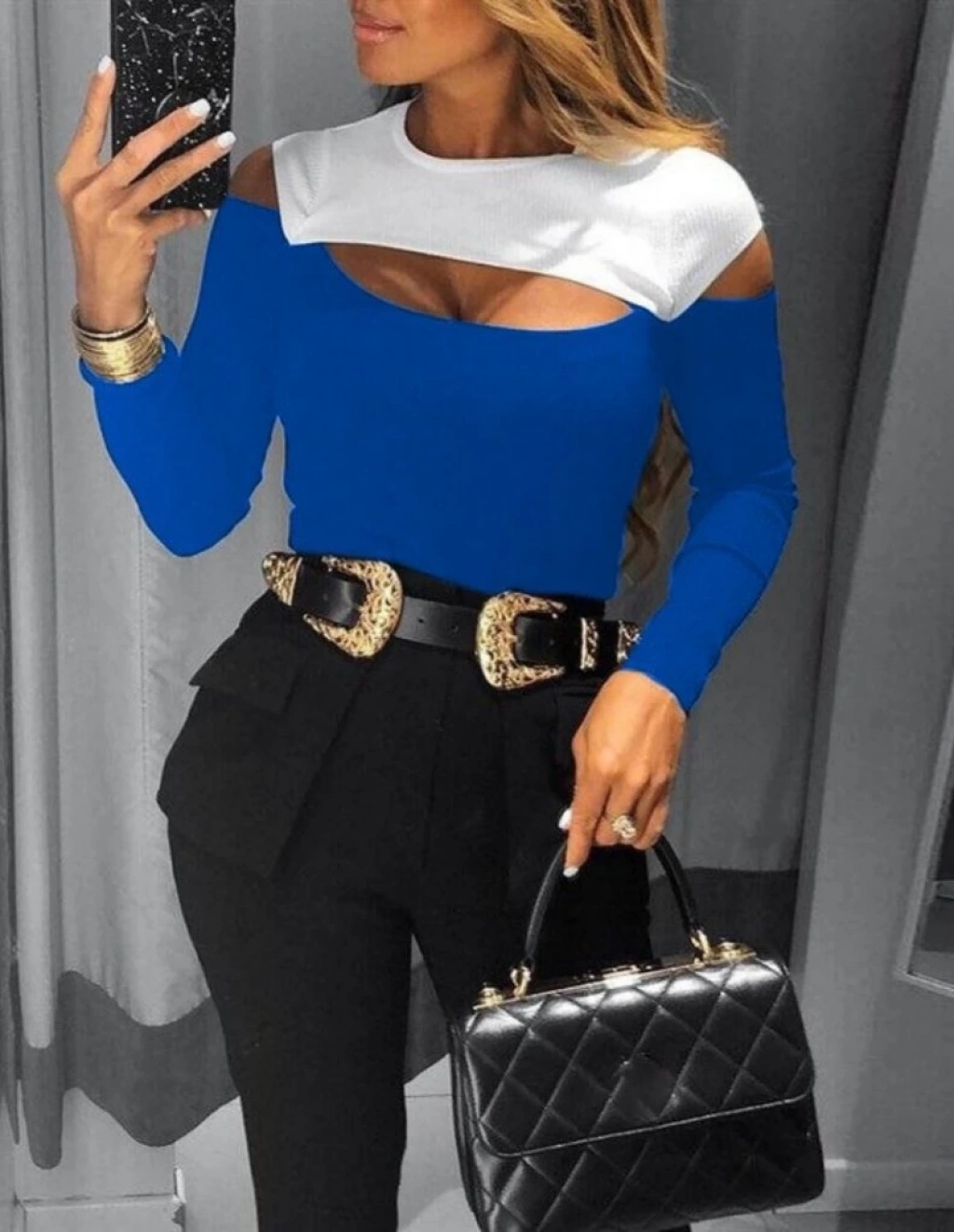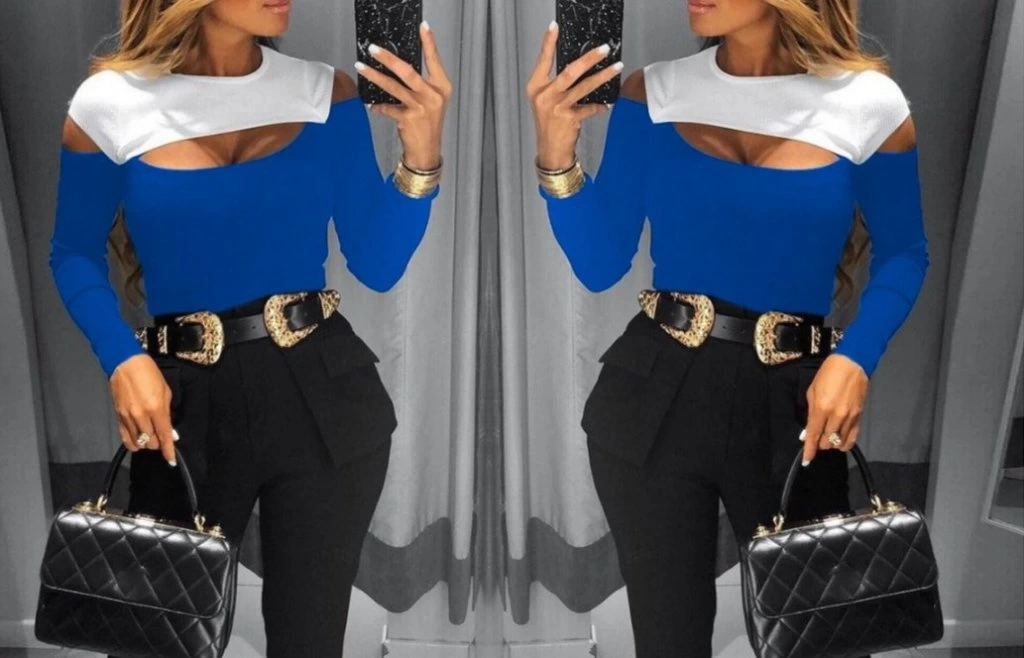 Kadın Uzun Kollu Bisiklet Yaka Göğüs Dekolteli Kaşkorse Bluz