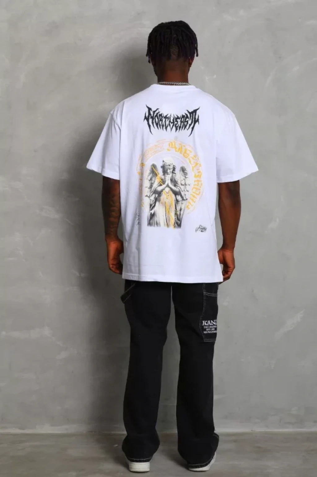 Unisex Oversize Baskılı Bisiklet Yaka T-Shirt - Beyaz