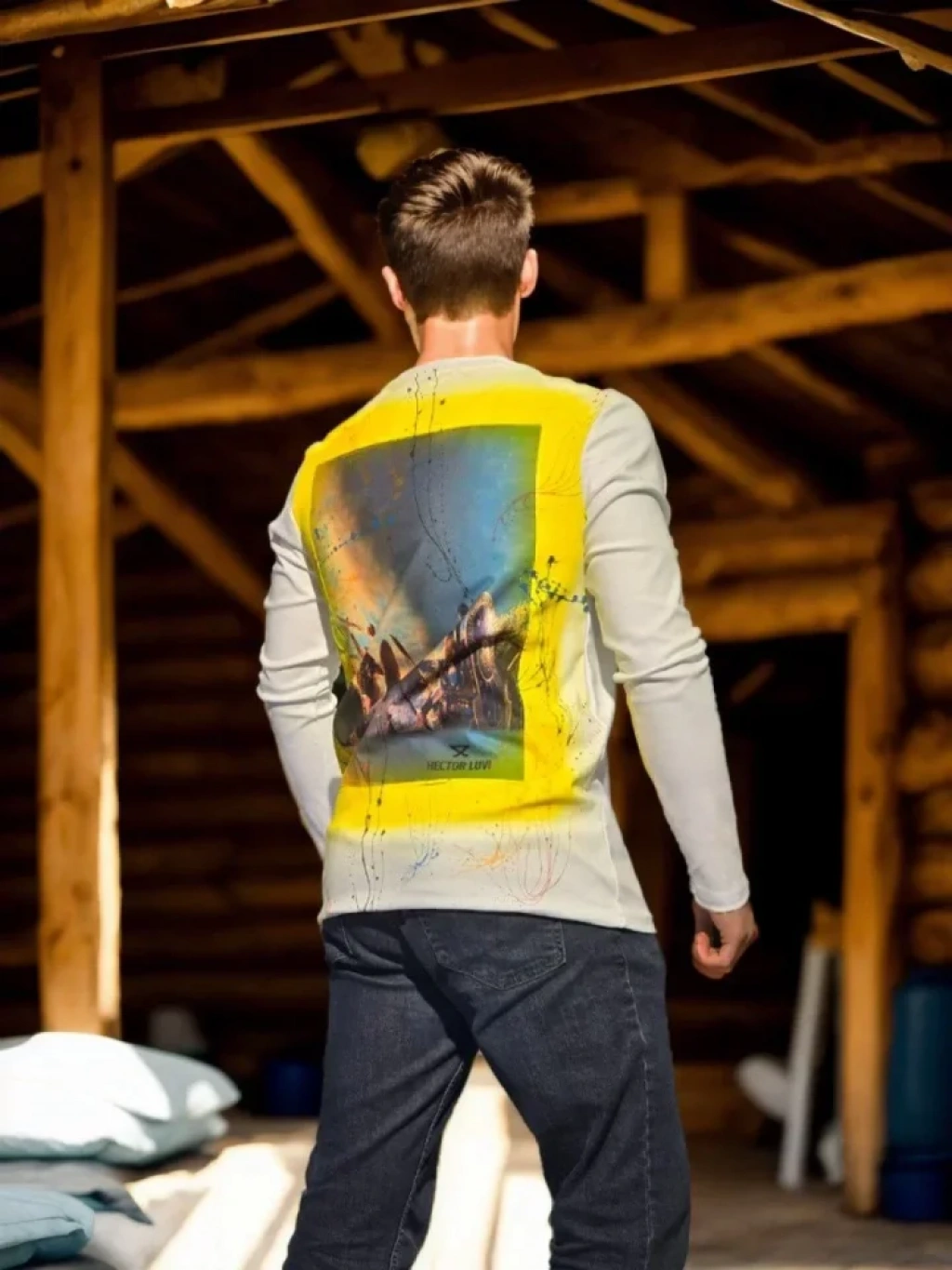 Unisex Bisiklet Yaka Uzun Kollu T-Shirt - Beyaz