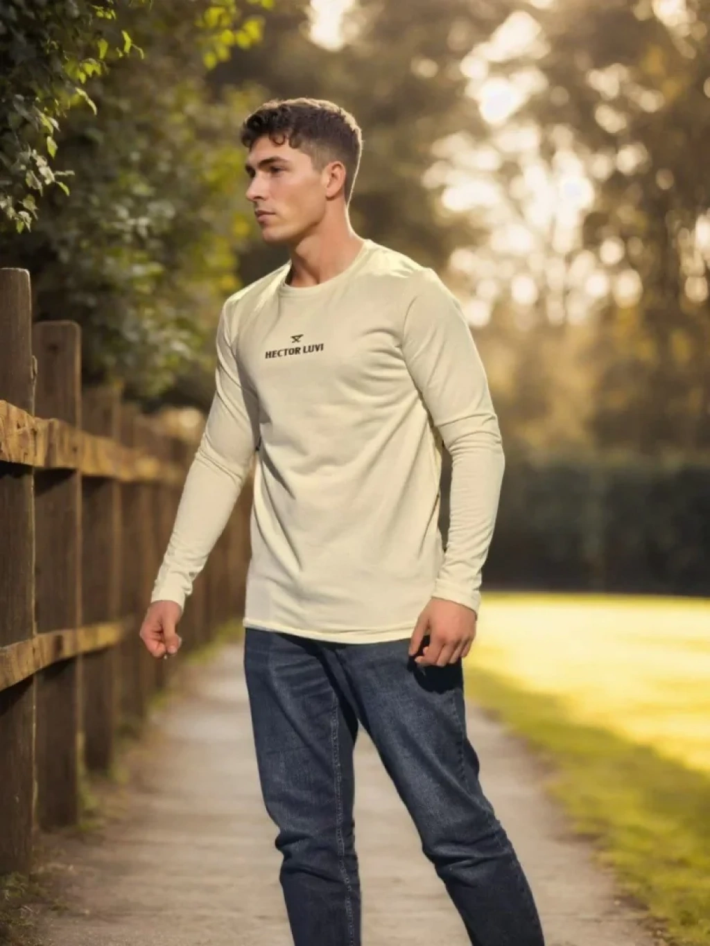 Unisex Bisiklet Yaka Uzun Kollu T-Shirt - Beyaz