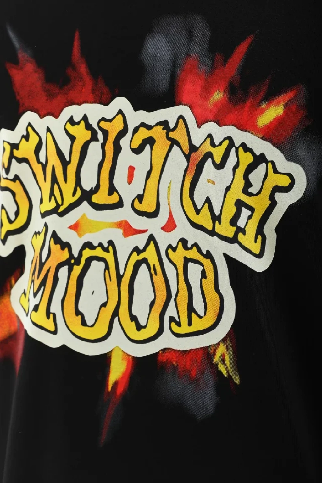 Unisex Oversize Baskılı Bisiklet Yaka T-Shirt - Siyah